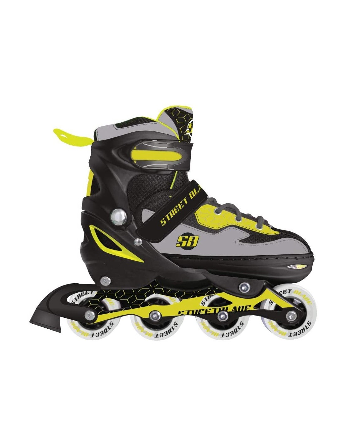 Sport 1 pattini in linea street blade allungabili con stivaletto fitness e gambaletto snodato. Freno a tampone, chassis in metallo a profilo piatto e ruote in pu. Si raccomanda la sorveglianza di un adulto -Stivaletto fitness -Gambaletto snodato -Freno a tampone -Chassis in metallo a profilo piatto -Massima portata 100 kg Stivaletto fitness Gambaletto snodato Freno a tampone Chassis in metallo a profilo piatto Massima portata 100 kg