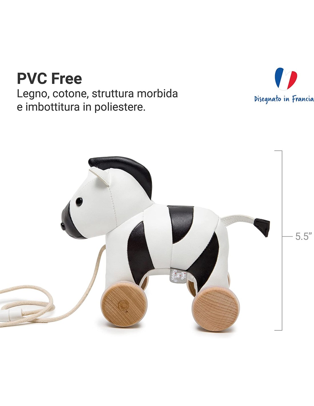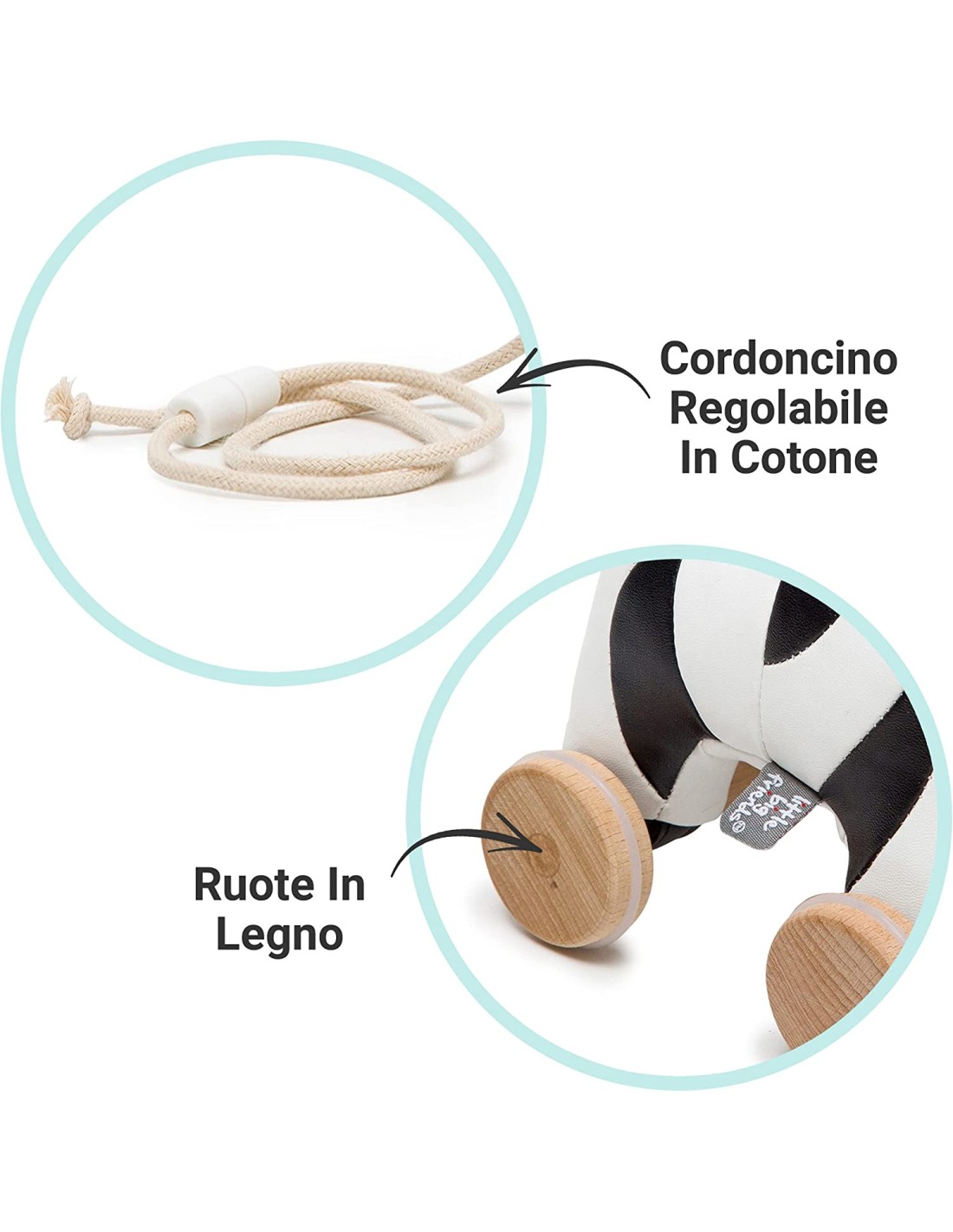 Una Zebra di peluche, caratterizzato dalla possibilità di essere trainato grazie a una corda attaccata al suo naso.