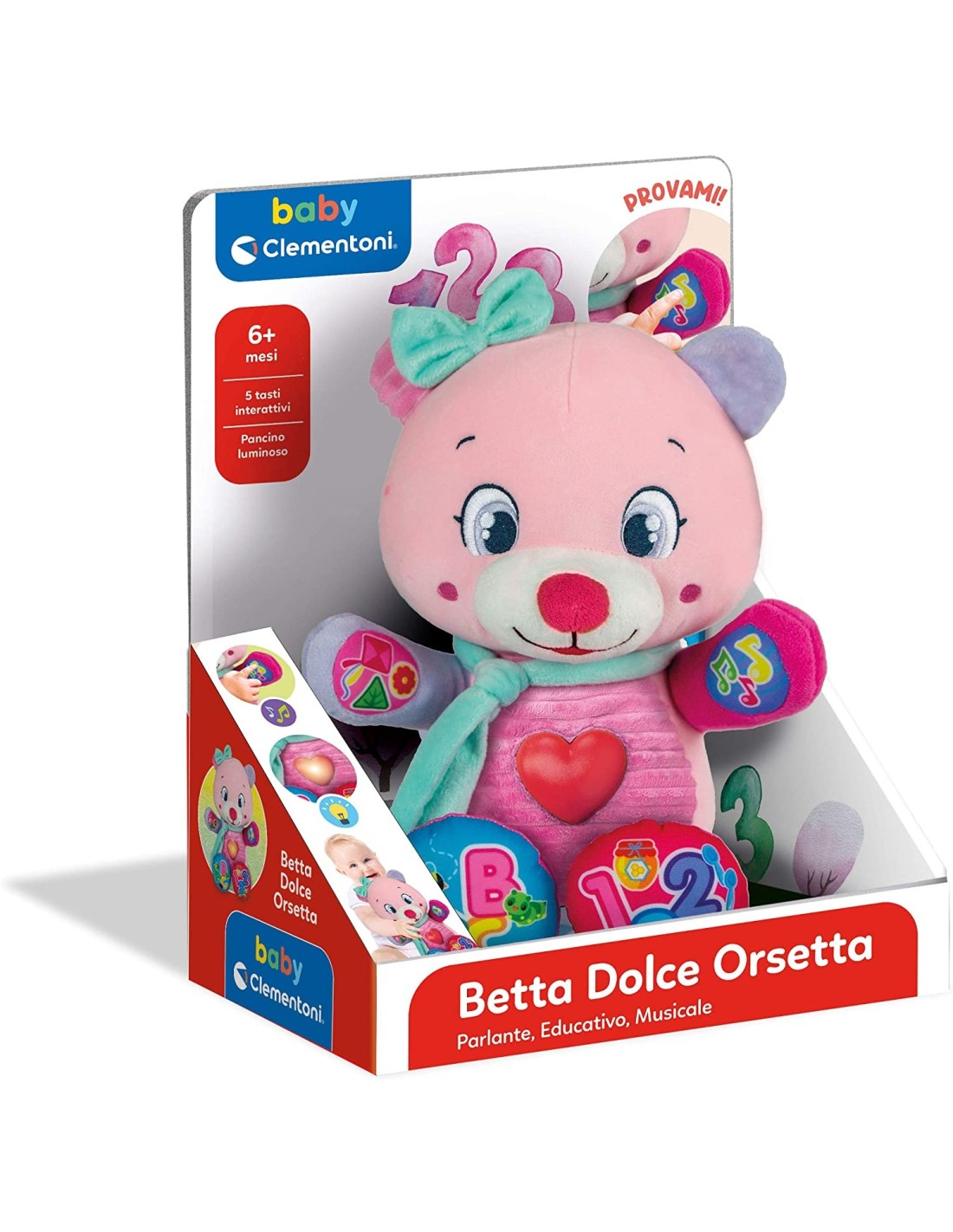Clementoni- Betta Dolce Orsetto Peluche parlante interattivo, 6 Mesi+