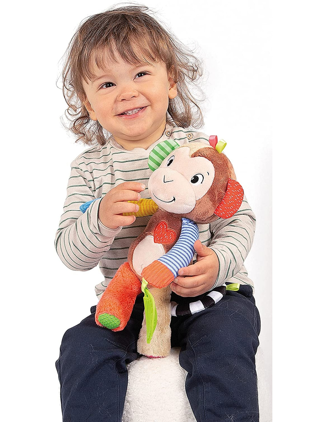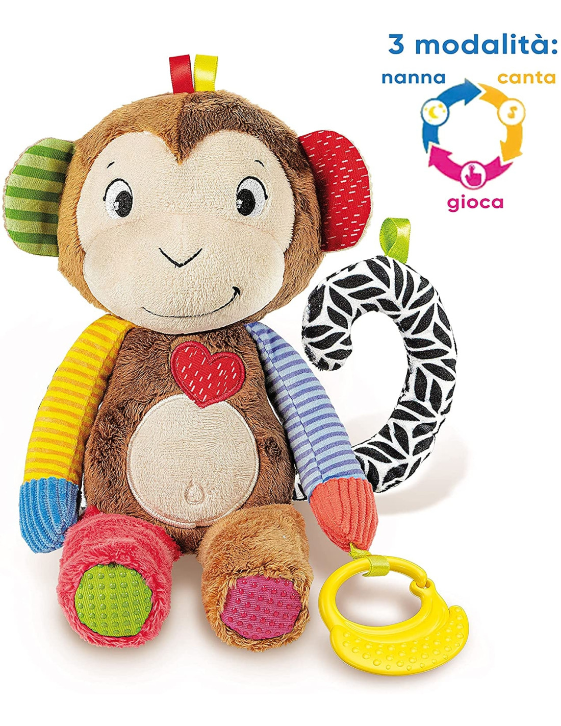 PARLANTE: la dolce scimmietta è un peluche con voce e melodie studiate per guidare i bambini alla scoperta del gioco, per divertire e per stimolare il linguaggio.