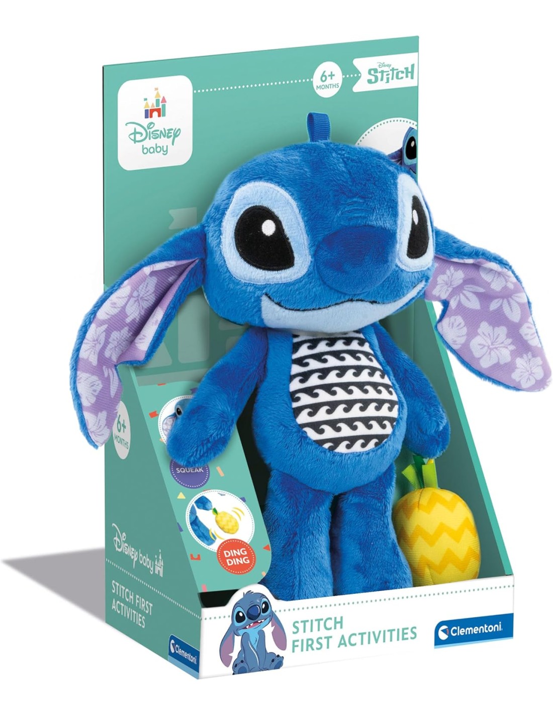 Clementoni Disney Baby First Activities Stitch-Peluche, Gioco Prima Infanzia, Giocattolo Prime attività, Pupazzo Neonato, Lavabile in Lavatrice, Multicolore, 17918
