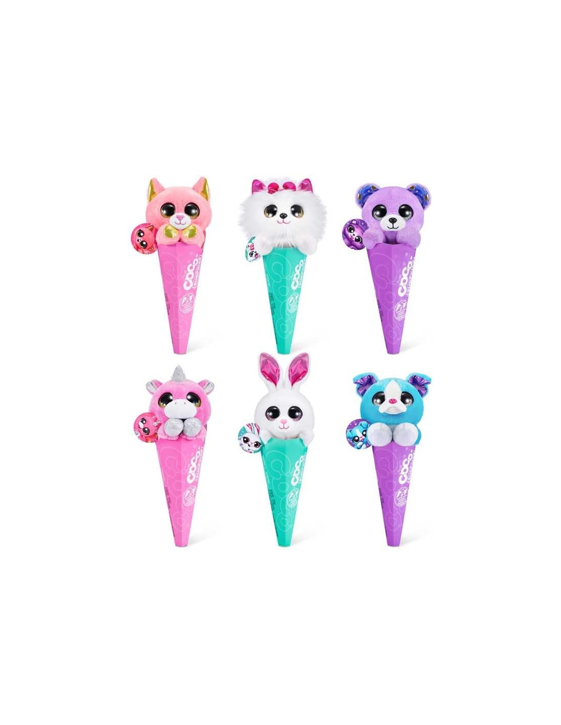 Adotta il tuo adorabile animaletto con il nuovo peluche Coco Cones in a Cone! Questi 12 teneri cuccioli vengono immersi nel loro cono, in attesa di essere portati a casa. Mescola e abbina per creare la tua collezione perfetta di animali domestici con 12 personaggi tra cui scegliere come Charlie the Llama, Fifi the Unicorn, Kai the Monkey e persino Deeno the Dino. Tirali fuori dal cono e trova un bambino nascosto a sorpresa nascosto dentro! Collezionali tutti. Ciascuno venduto separatamente.