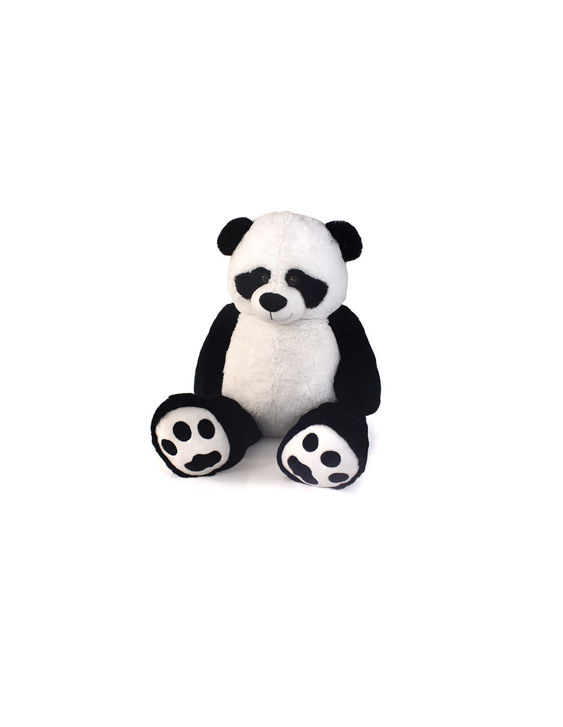 Peluche Maxi Panda, grande morbido peluche, imbottito in Europa. grande morbido peluche, imbottito in Europa. Altezza peluche 100cm. Confezione in sacca trasparente. Codice a barre: 5212007582433. Adatto dai 3 anni in su.