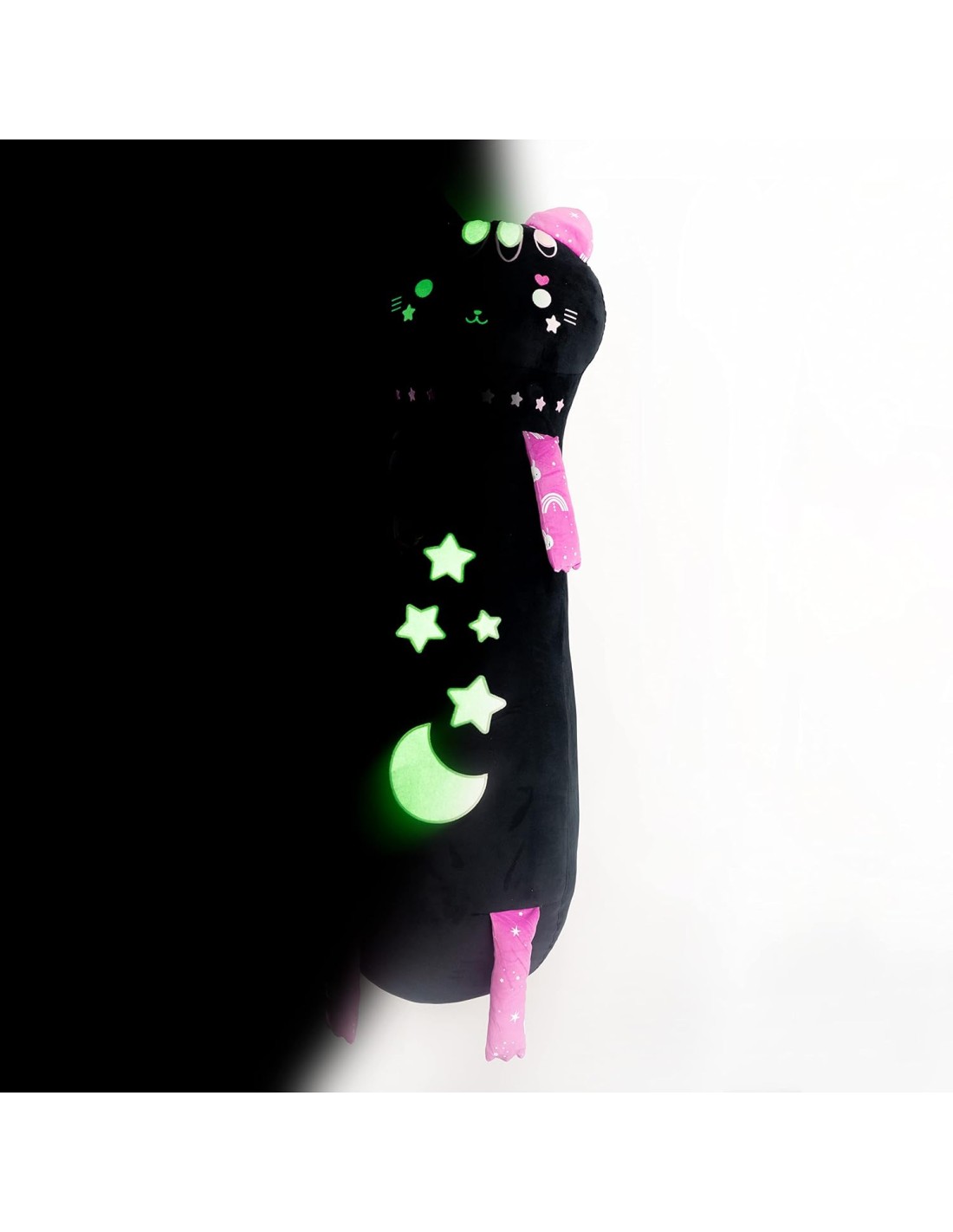 CARATTERISTICHE: il cuscino di Peluche Takai Nana è realizzato in tessuto poliestere, molto soffice, per offrire una piacevole sensazione al tatto. I disegni di stelle, cuore o luna cuciti sul pupazzo si illuminano al buio, creando un effetto luminoso simpatico.
