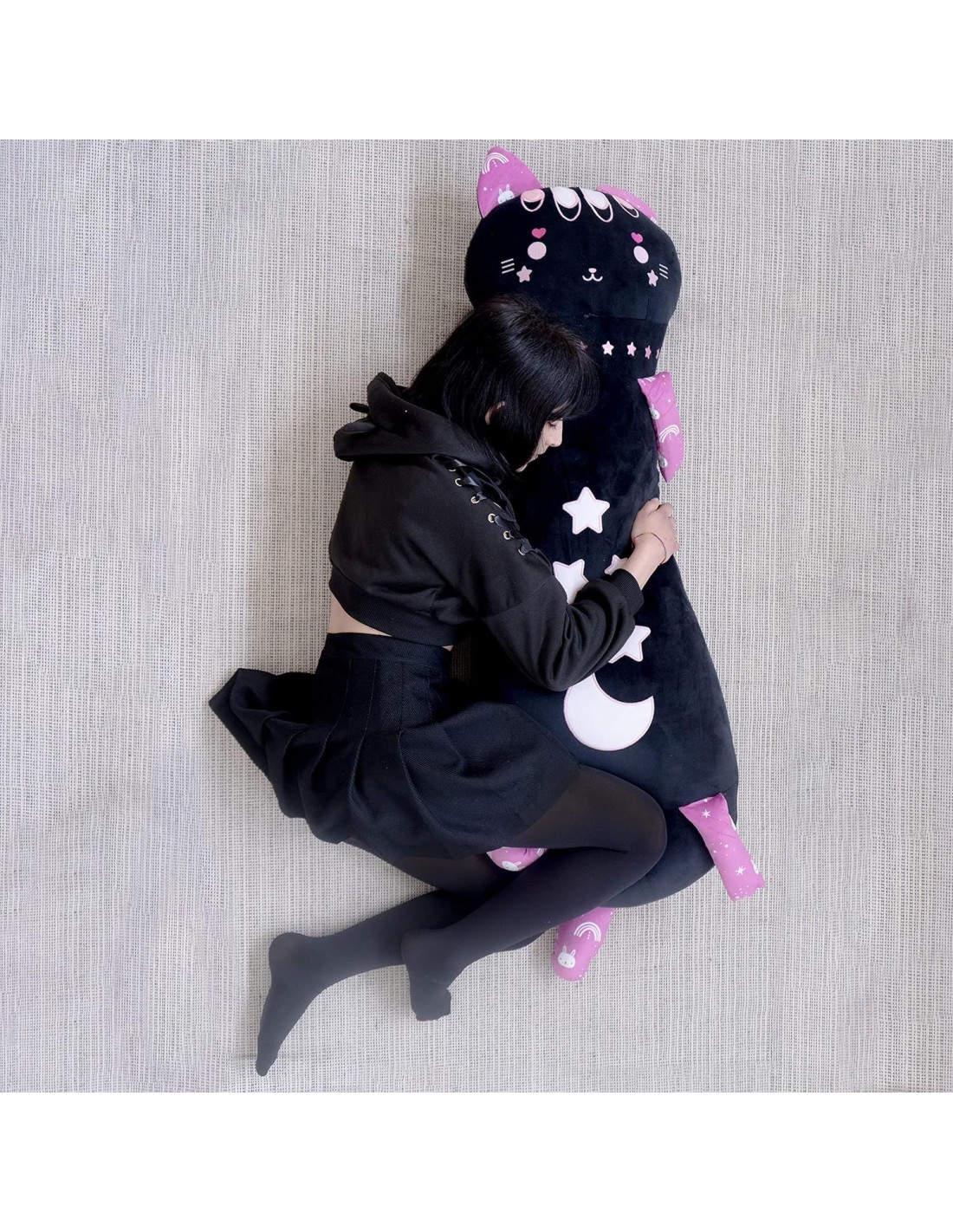 MOMOMI TAKAI NANA: morbido peluche a forma di Gatto, in stile Kawaii, tutto da abbracciare e coccolare, di 120 cm di lunghezza. Disponibile nella versione colore nero.