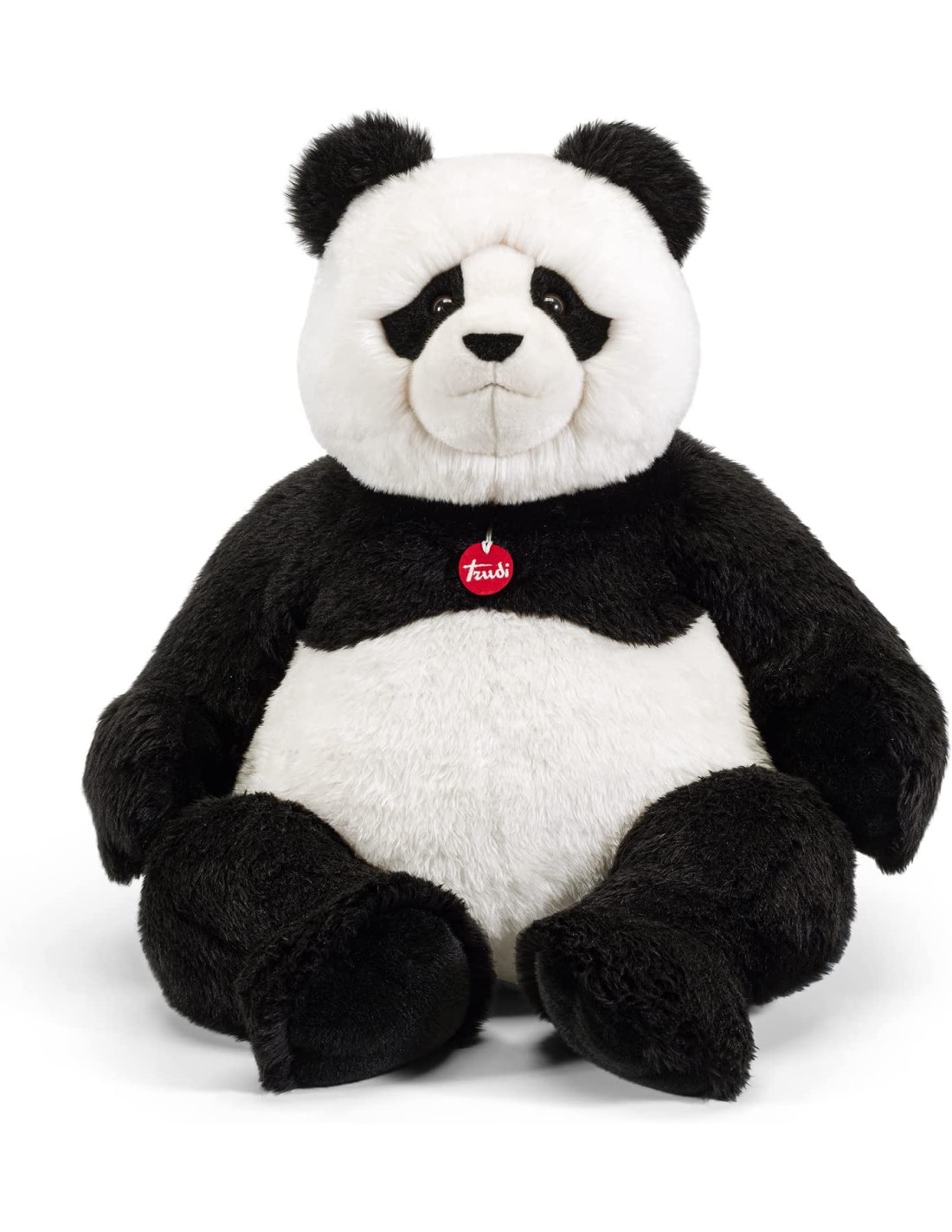 Il peluche è lungo circa 70 cm ed è realizzato con materiali di alta qualità che lo rendono morbido e piacevole al tatto. Kevin ha un manto bianco e nero, come da caratteristica della specie, e presenta dettagli realistici come gli occhi scuri e la bocca nera. Trudi è un'azienda italiana specializzata nella produzione di peluche e giocattoli di alta qualità. Tutti i suoi prodotti sono realizzati con materiali sicuri e di alta qualità e vengono sottoposti a rigorosi controlli di qualità per garantirne la sicurezza e la durata nel tempo. Il peluche Panda Kevin XXL è un'ottima scelta per i bambini che amano gli animali e per i collezionisti di peluche che cercano un prodotto di alta qualità e realistico. Grazie alle sue dimensioni, è un peluche particolarmente adatto ad abbracci e coccole.