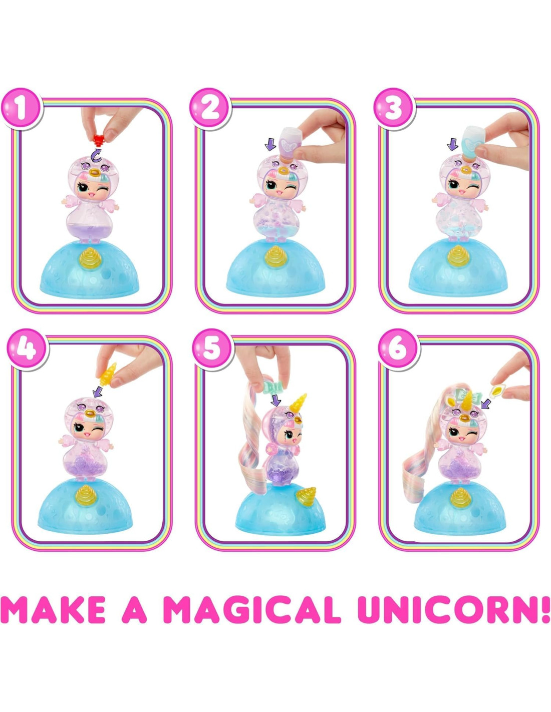 LAMPADA DI LAVA: Ogni pallina include 1 Unicorn Tot e 2 "pozioni" colorate da versare all'interno della Tot, per dare l'impressione di una lampada di lava con bolle colorate che scivolano l'una sull'altra all'interno della bambola
