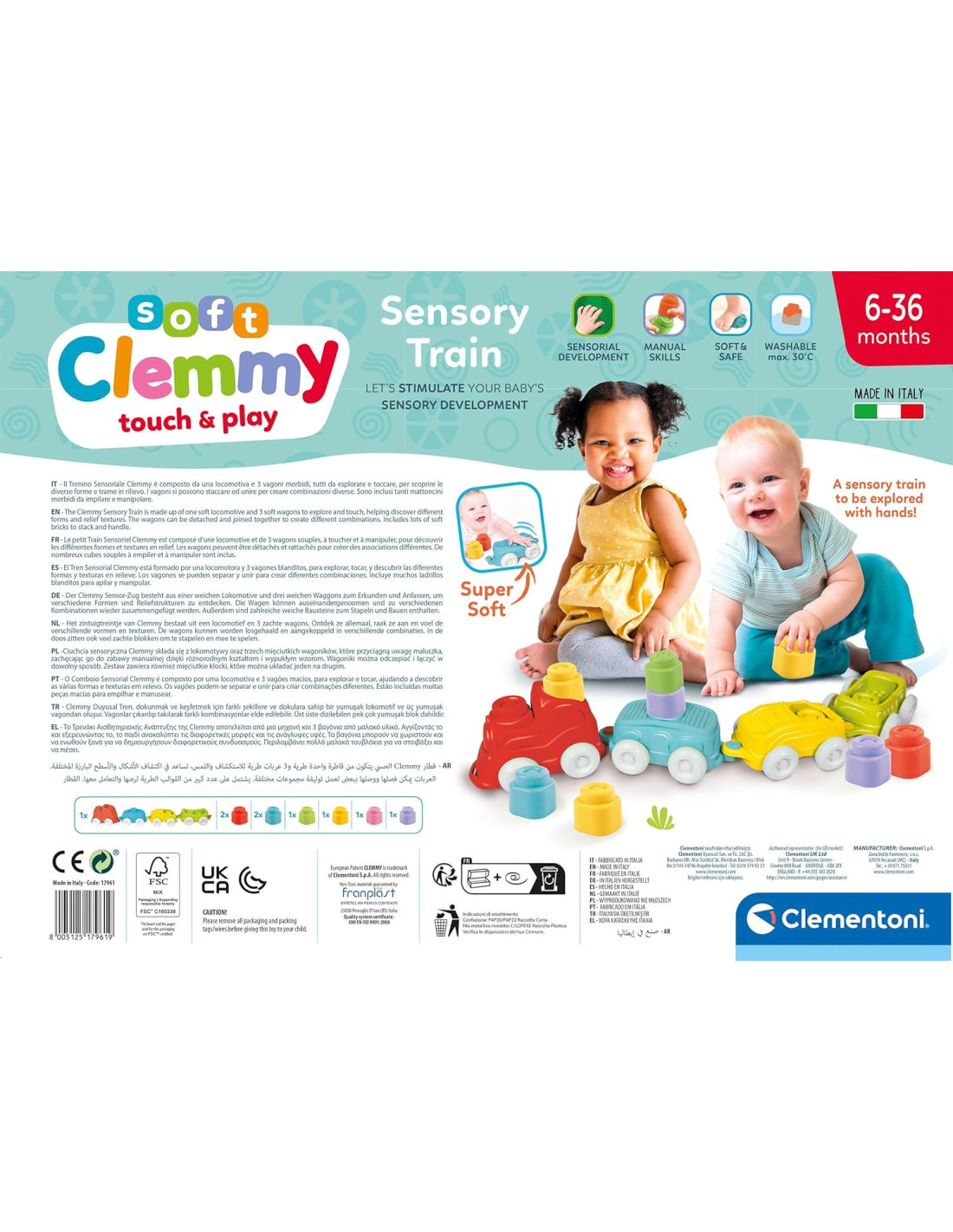 Clementoni Soft Clemmy Touch & Play Sensory Train - Playset Treno con Mattoncini Morbidi Bambini 6 Mesi, Set Costruzioni Prima Infanzia, Gioco Impilabile Sensoriale, Lavabile, Made in Italy, 17961