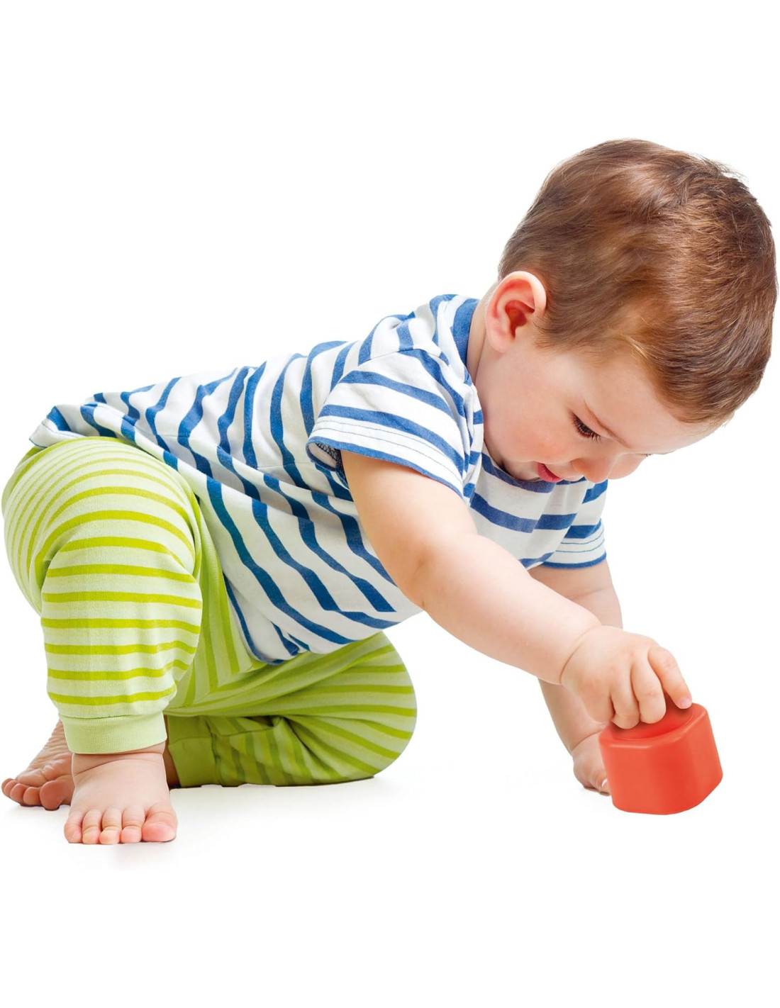 Un morbido trenino completo di locomotiva e vagoni con cui giocare ed esplorare con le mani. Il bambino scoprirà i rilievi, le sue forme, sperimenterà la morbidezza del materiale Clemmy, vivendo un'esperienza sensoriale che lo aiuterà a sviluppare il tatto e la manualità. Con tanti morbidi mattoncini colorati, da incastrare sui vagoni e sulla locomotiva, oppure uno sopra l'altro per creare soffici torri colorate da far cadere, per poi ricostruirle... all'infinito. I vagoni si possono staccare e unire tra di loro facilmente. Le ruote consentono al trenino di muoversi e di trainare il trenino con i suoi vagoni, per inventare tante storie e viaggiare con la fantasia senza limiti.