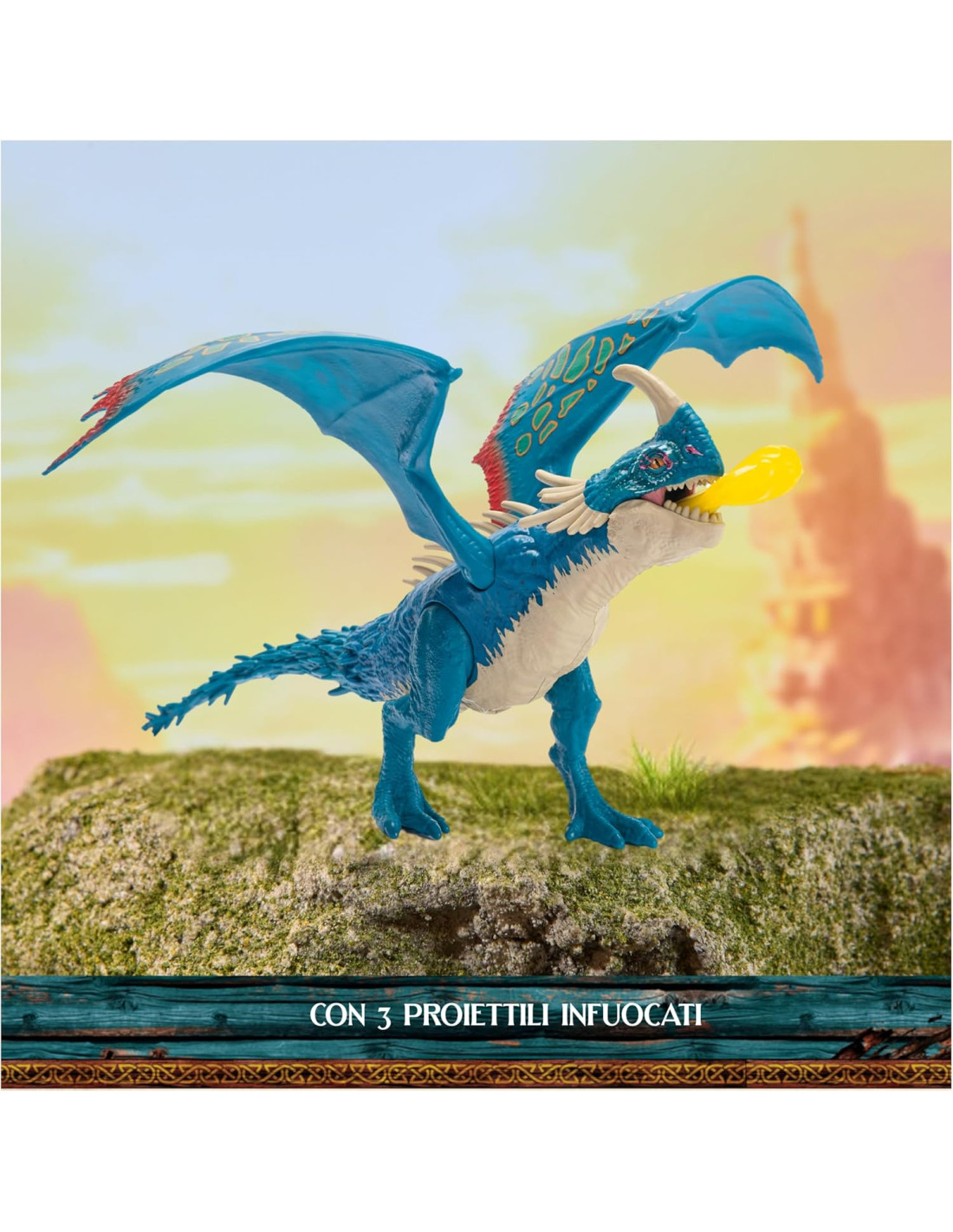 PROIETTILI DI FUOCO: inserisci il proiettile di fuoco nella bocca e premi il pulsante sulla parte posteriore per lanciare i proiettili dell'Uncinato Mortale contro altri draghi o vichinghi (ciascuno in vendita separatamente)