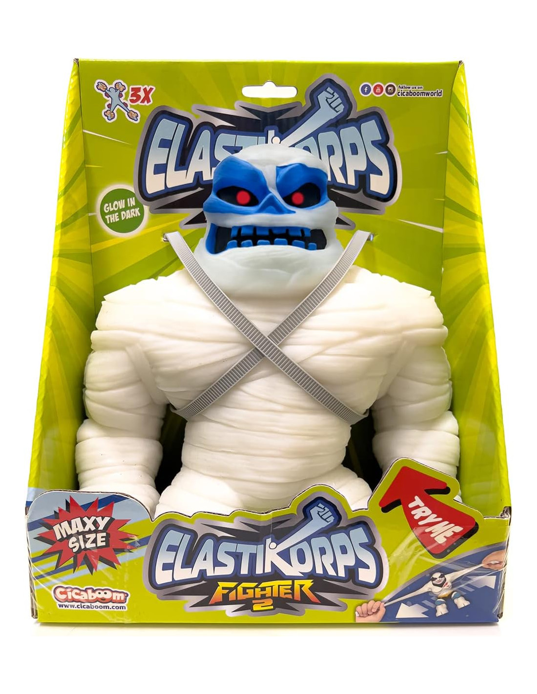 dea regalo bambini 4+ - Gli Elastikorps Fighter Maxy Size sono fantastiche idee regalo per bambini dai 4 anni in su. MAXY SIZE!- Gli Elastikorps Fighter Maxy Size sono alti 23 cm per 2 Kg! Giocattolo elastico allungabile - Gli Elastikorps Fighter sono realizzati in gomma e sono estensibili fino a 3 volte la propria dimensione! Si illuminano al buio! - Tutte le Mummie Elastikorps Fighter Maxy Size sono Glow in the Dark! Esclusiva Cicaboom - Puoi acquistare Maxy Bone (Mummia Bianca) solamente da Cicaboom.