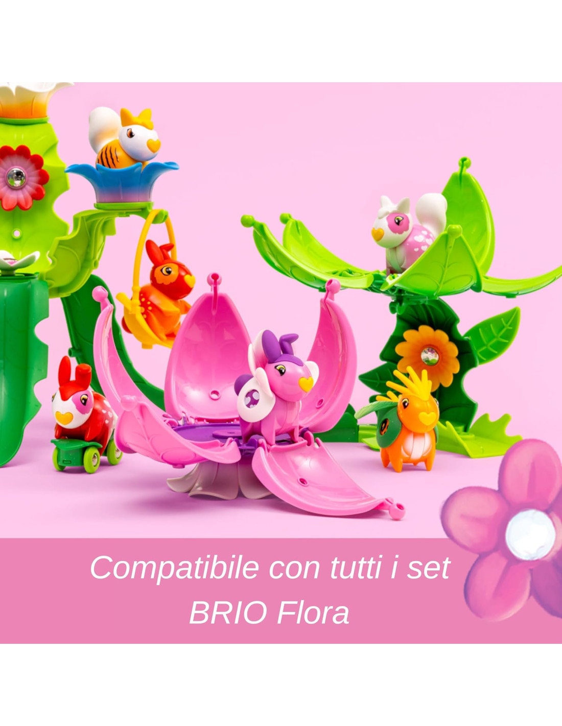 PERSONAGGIO DIVERTENTE E COLORATO - Adorabile personaggio colorato di BRIO Flora, con un design simpatico e caratteristiche intuitive come il magnete nascosto, il corpo snodato e l'outfit a fiore. SET DI GIOCO COLORATO - Include un set di gioco a forma di fiore con un design dettagliato e colori rosa e bianco coordinati, che si apre per creare un ambiente accogliente dove giocare. DIVERTIMENTO CREATIVO E NARRATIVO - Ispira i bambini a costruire i loro mondi e raccontare le loro storie mentre giocano, stimolando la creatività, l'immaginazione e le capacità di narrazione. AMBIENTE DI GIOCO CREATIVO - Compatibile con tutti i set di gioco e accessori BRIO Flora per un gioco senza limiti e un divertimento ancora più magico. DESIGN DI QUALITÀ BRIO – Sicuro per i più piccoli, senza piccole parti, facile da pulire e costruito secondo gli alti standard BRIO, progettato per resistere a lunghe sessioni di gioco.