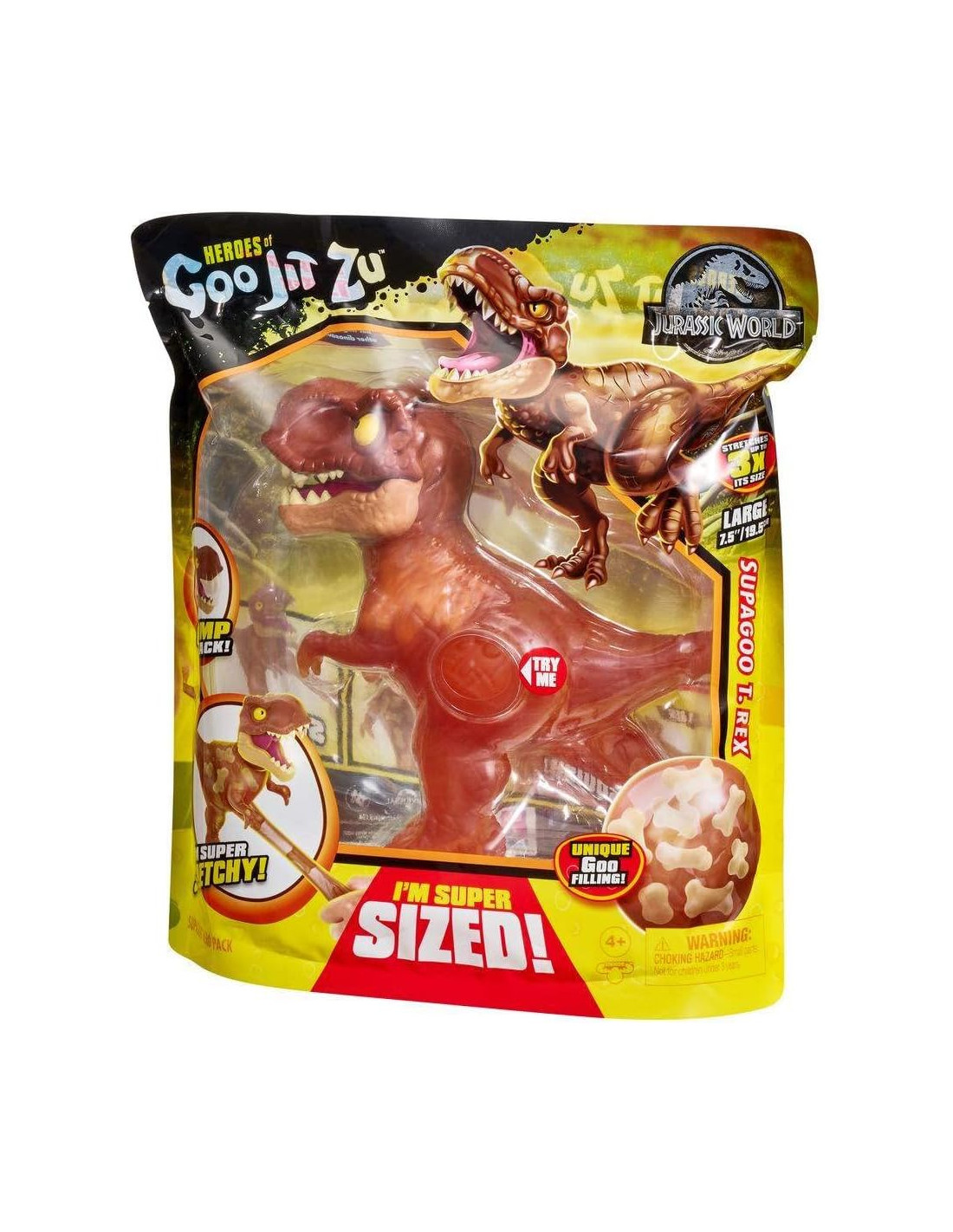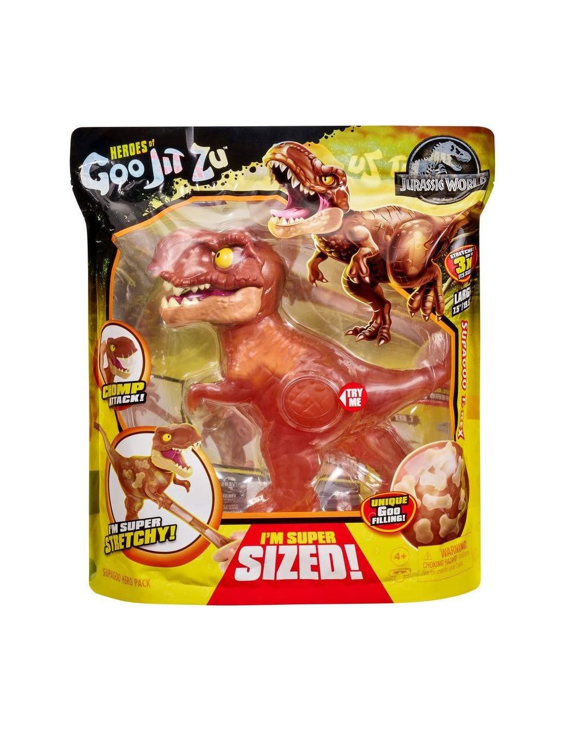 Il T-Rex direttamente dal mondo Jurassic World in versione Goo Jit Zu Versione 20cm del feroce ed allungabile T-Rex Con attacco morso Con riempimento particolare Schiaccialo, tiralo è fortissimo!