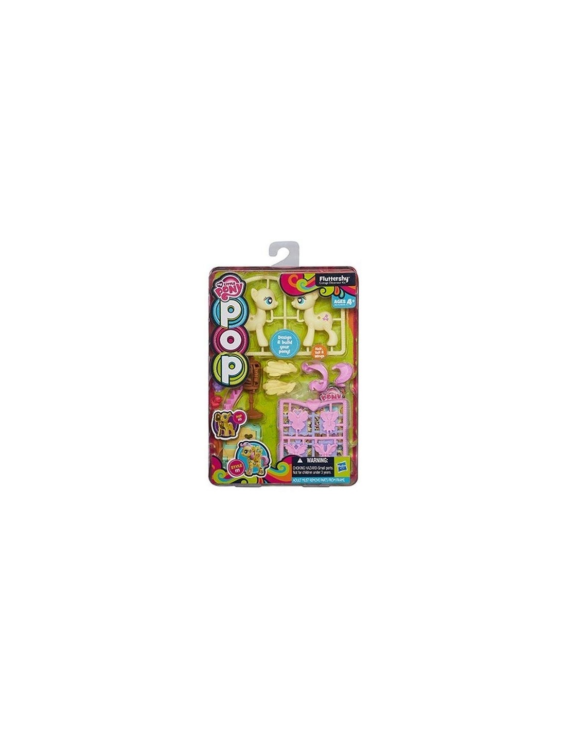 Costruisci e decora il tuo personale pony per passare un fine settimana indimenticabile all'insegna delle avventure e dell'amicizia Basta staccare il corpo di Fluttershy dalla sua cornicetta e incastrare le varie parti fra loro, quindi aggiungere la criniera, le ali, la coda e il gioco è fatto Per rendere poi il tuo pony bello, aggiungi gli adesivi in dotazione e sarete pronti per una passeggiata con la lanterna e gli altri accessori del cottage