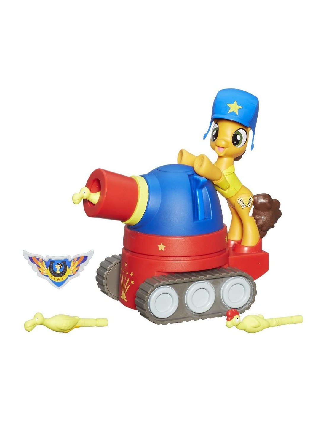 I Guardiani dell'Armonia sono pony avventurosi, che se le inventano tutte pur di farti divertire! Questa volta Cheese Sandwich guida addirittura un buffo carro armato da circo, con tanto di cingoli, che lancia in volo un pollo e un pellicano da gara! Cheese Sandwich è alto 8 cm ed è completamente snodato! Indossa il distintivo dei Guardiani in dotazione e preparati al prossimo lancio a razzo! Non adatto a bambini con età inferiore a 3 anni Informazioni legali Non adatto a bambini sotto i 3 anni di ecc. Nonostante sia nostro impegno assicurare la correttezza delle informazioni dei prodotti talvolta i produttori possono modificare le loro specifiche. L'imballaggio effettivo utilizzato e i materiali possono contenere informazioni che differiscono da quelle presentate nel nostro sito web. Si consiglia di non basarsi solo sulle informazioni qui presentate ma di leggere sempre le etichette, gli avvertimenti e i consigli d'uso prima di utilizzare o scartare un prodotto. Si suggerisce di contattare il produttore per avere maggiori informazioni su un determinato articolo. Contenuto della confezione 1 x bambola, 1 x accessorio -Entra nel magico mondo dei My Little Pony -Con cannone sparapolli -Completamente snodabile Entra nel magico mondo dei My Little Pony Con cannone sparapolli Completamente snodabile