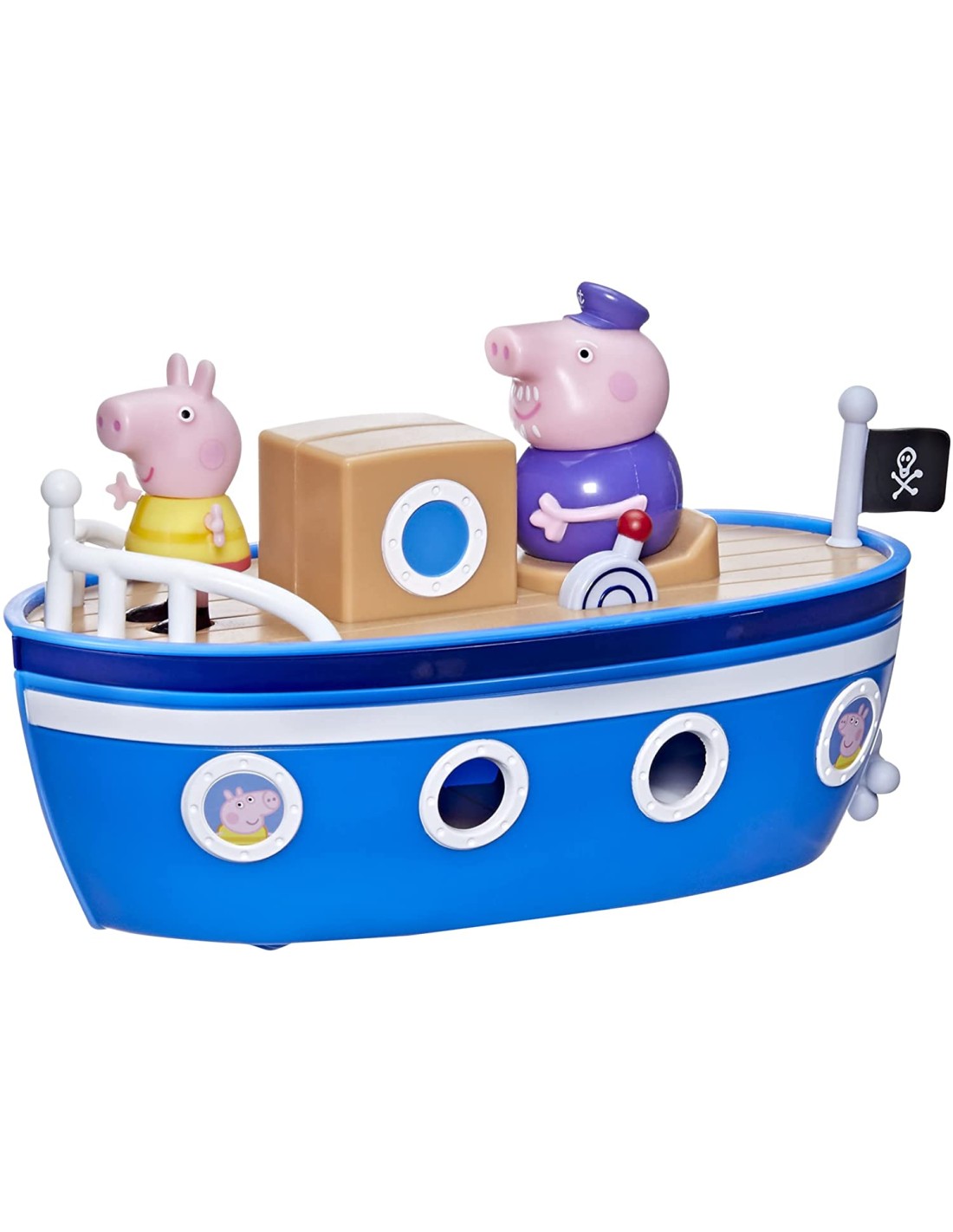 LA BARCA DI NONNO PIG è un giocattolo per bambini in età prescolare con due livelli di fantastico divertimento! L'action figure di Nonno Pig è collegata sul ponte superiore, che si può rimuovere per rivelare un'accogliente cabina al di sotto DI PEPPA PIG: i bambini e le bambine possono immaginare Peppa Pig sul ponte con Nonno Pig, mentre dorme in uno dei lettini integrati nella cabina o forse mentre sbircia da uno degli oblò della barca LA BARCA PRESENTA RUOTE CHE GIRANO DAVVERO, in modo che i bambini e le bambine possano spingerla per casa Chissà dove navigheranno Peppa Pig e Nonno Pig UN REGALO FANTASTICO: per i bambini e bambine in età prescolare dai 3 anni in su che adorano Peppa Pig. Cerca altri veicoli di Peppa Pig come il Trenino della Signorina Coniglio e Air Peppa (ciascuno venduto separatamente, secondo disponibilità) Divertente: stimola la fantasia