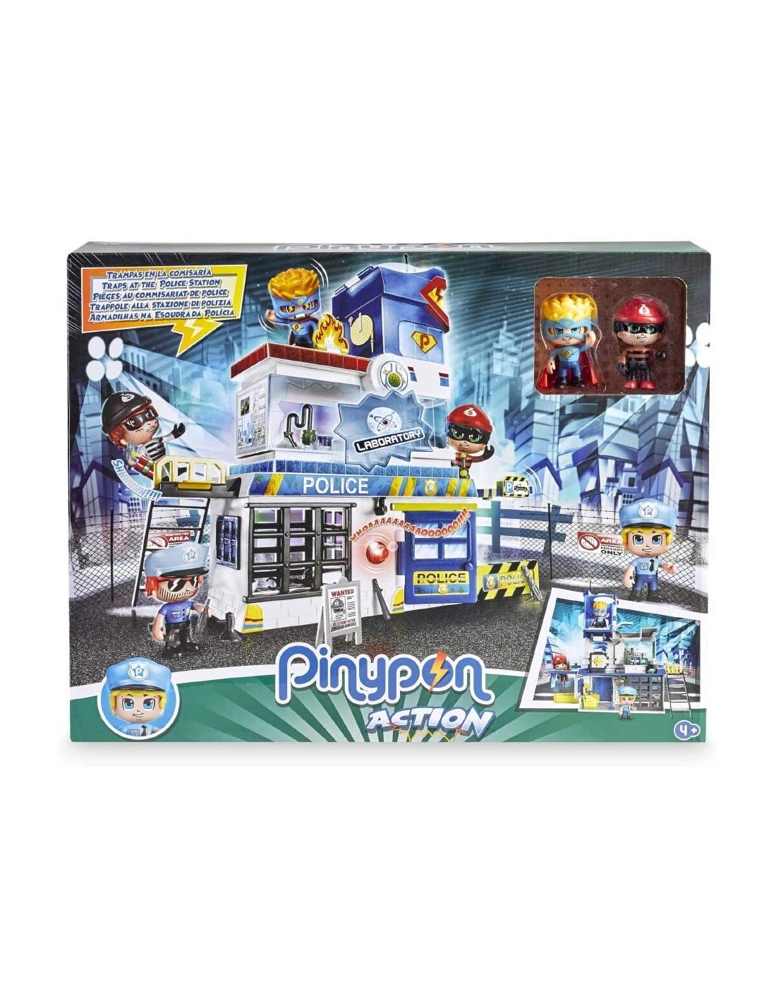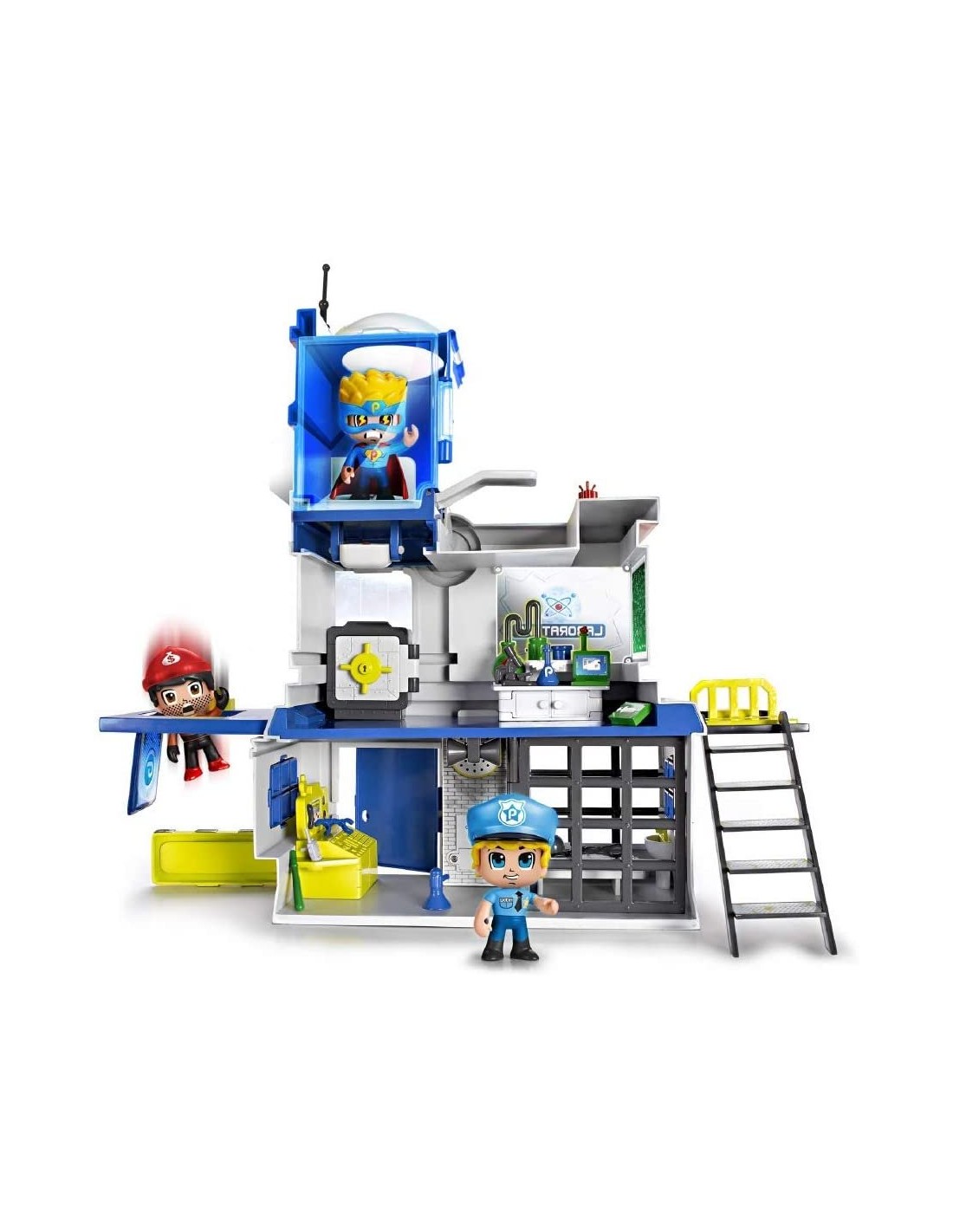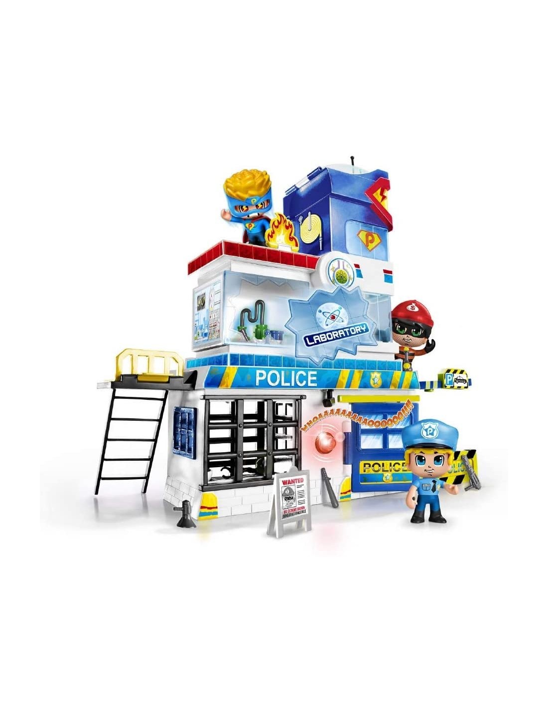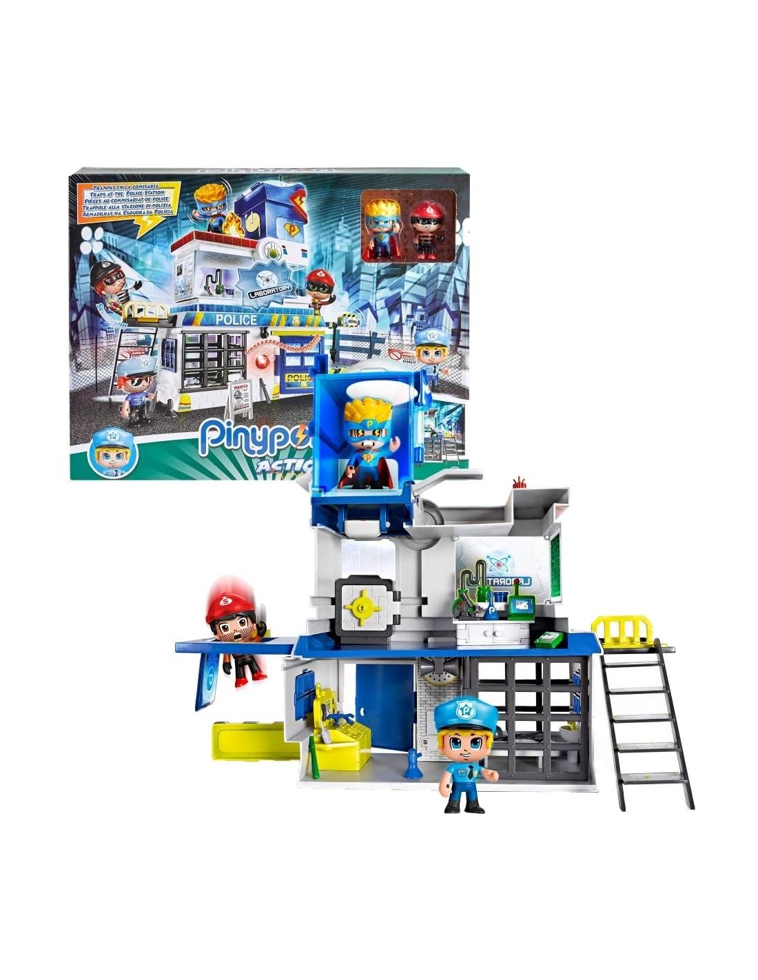 La stazione di polizia su 3 piani. Ha luci ed allarmi sonori. Tanti ambienti di gioco: dal laboratorio alla tana del supereroe, ma anche molte trappole per catturare i cattivi. Il playset include due personaggi ed alcuni accessori per trasformarli in supereroe. Nessun avvertimento applicabile -La stazione di polizia su 3 piani -Ha luci ed allarmi sonori - tanti ambienti di gioco: dal laboratorio alla tana del supereroe, ma anche molte trappole per catturare i cattivi -Include tanti accessori -Mix & Match - parti ed accessori del corpo removibili per creare una collezione infinita -Include poliziotto e ladro alti 7 cm La stazione di polizia su 3 piani Ha luci ed allarmi sonori tanti ambienti di gioco: dal laboratorio alla tana del supereroe, ma anche molte trappole per catturare i cattivi Include tanti accessori Mix & Match parti ed accessori del corpo removibili per creare una collezione infinita Include poliziotto e ladro alti 7 cm