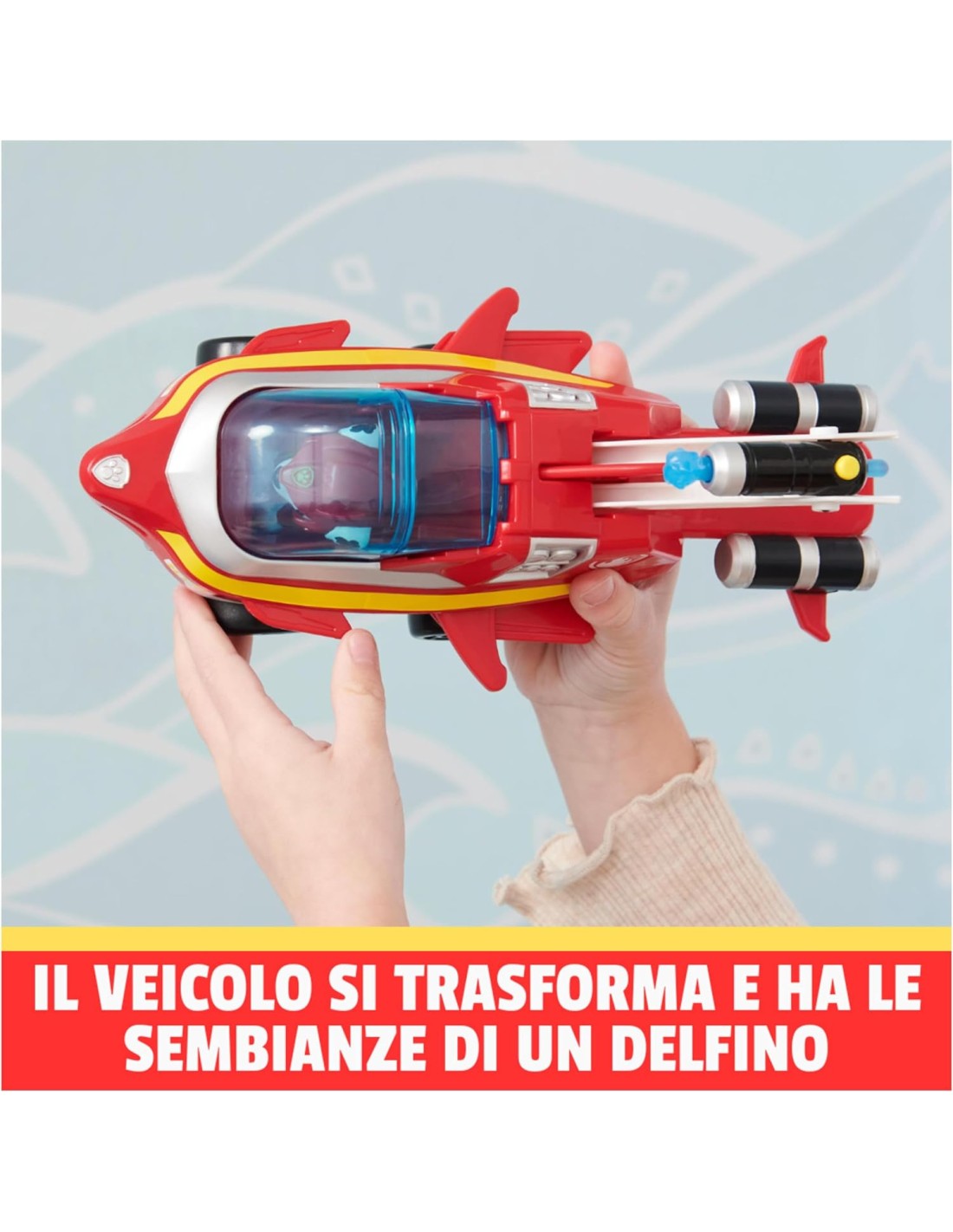 I VEICOLI PAW PATROL AQUA PUPS: Progettato con dettagli ed elementi realistici, il veicolo trasformabile Aqua Pups di Marshall è fedele al veicolo a forma di delfino che Marshall utilizza nelle sue missioni di salvataggio marine della serie