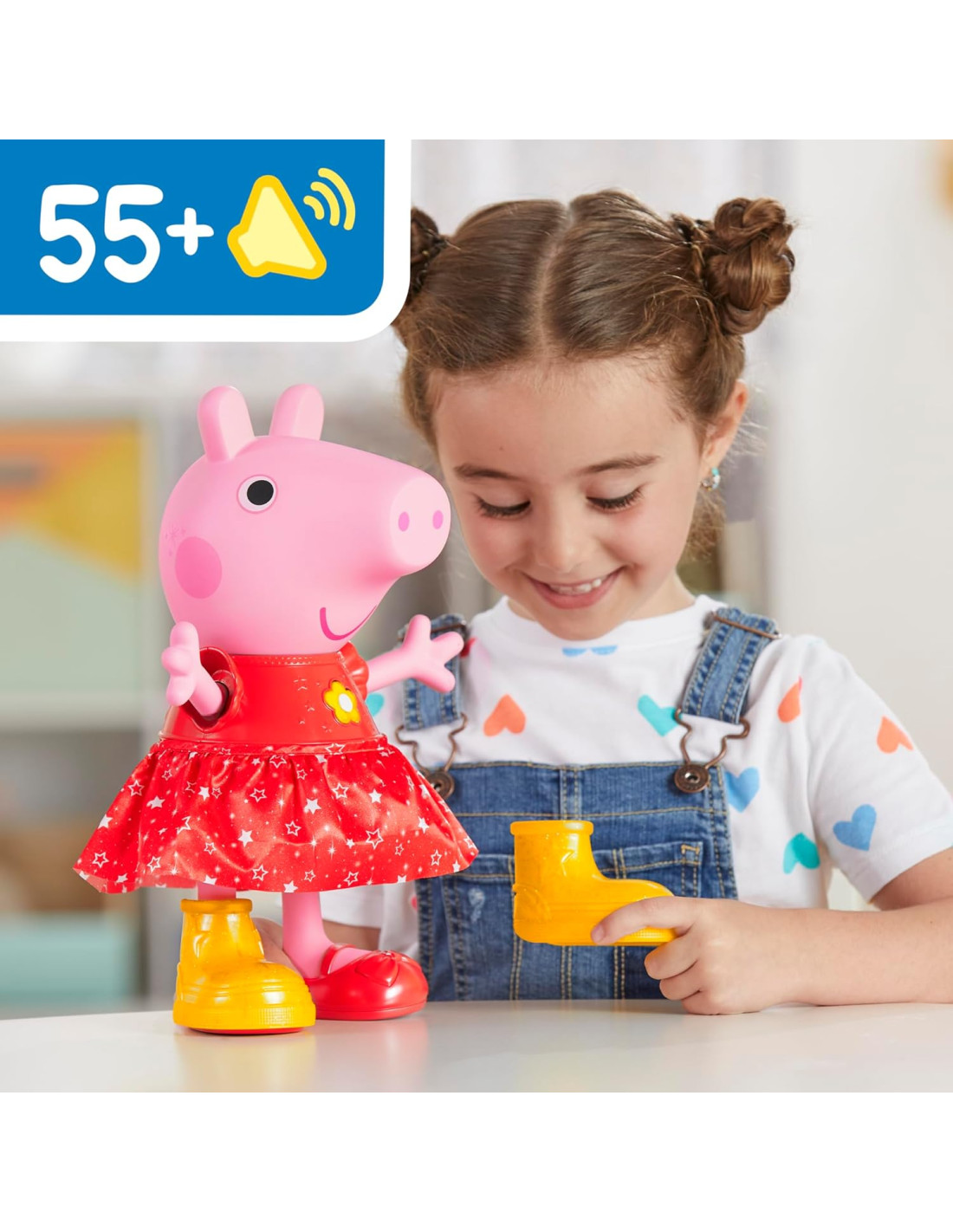 CON GLI STIVALI IL GIOCO CAMBIA: fai indossare a Peppa gli stivali oppure togliglieli per scoprire tutte le frasi, gli effetti sonori, le canzoni e i giochi che può offrire