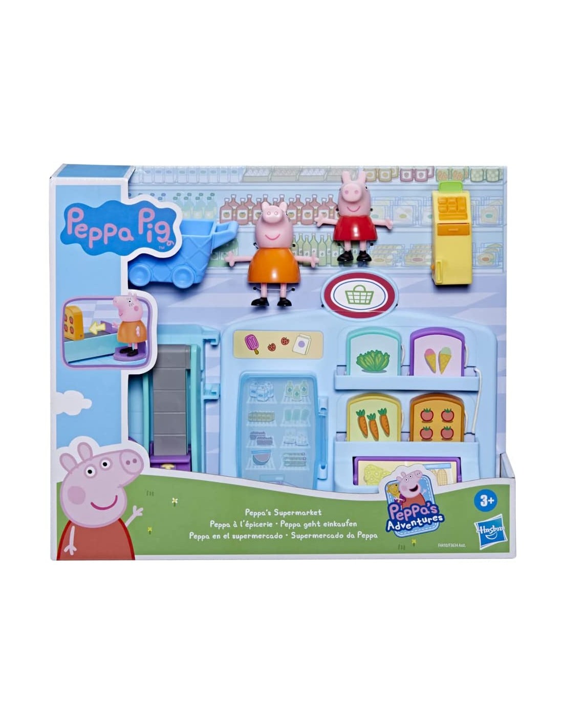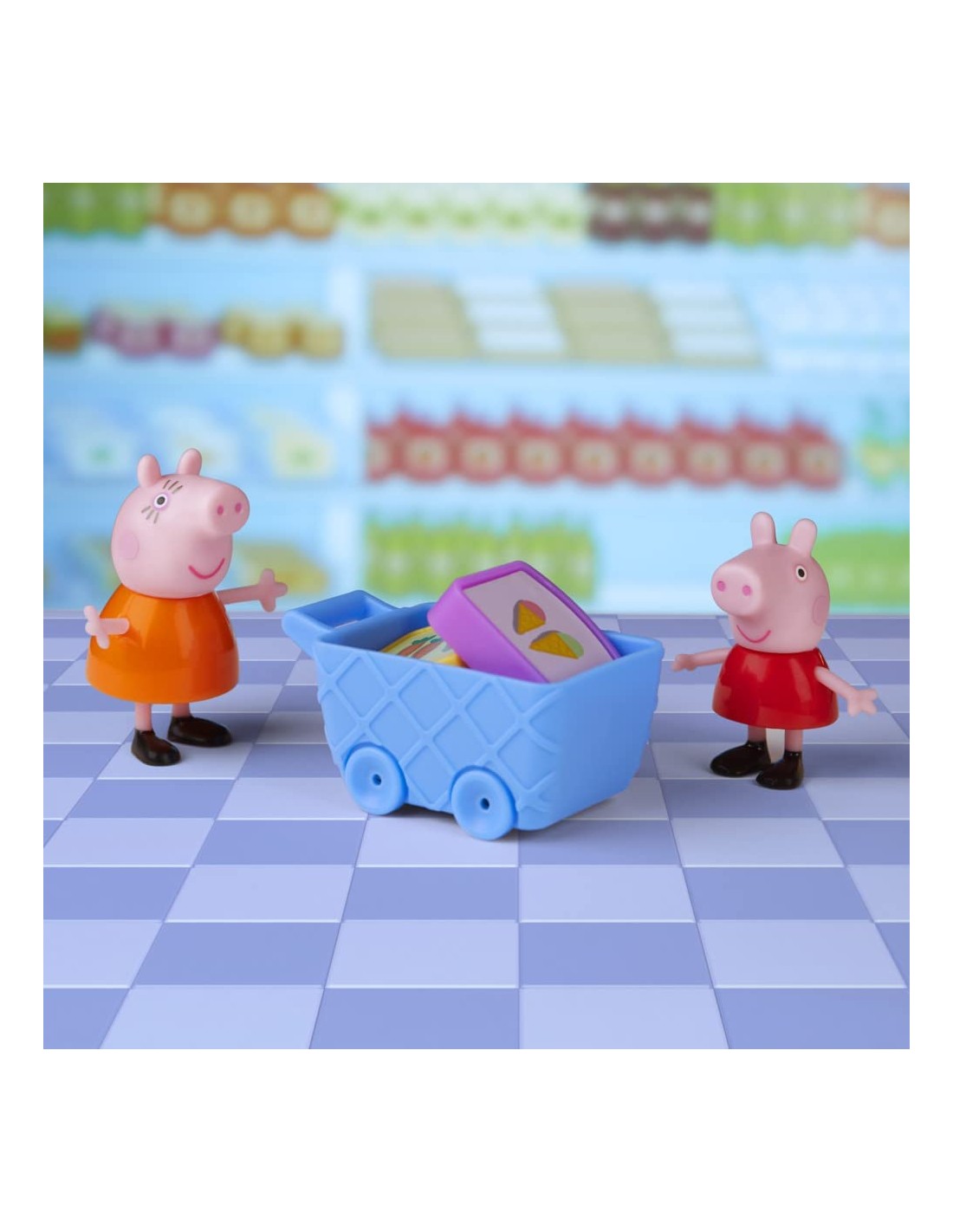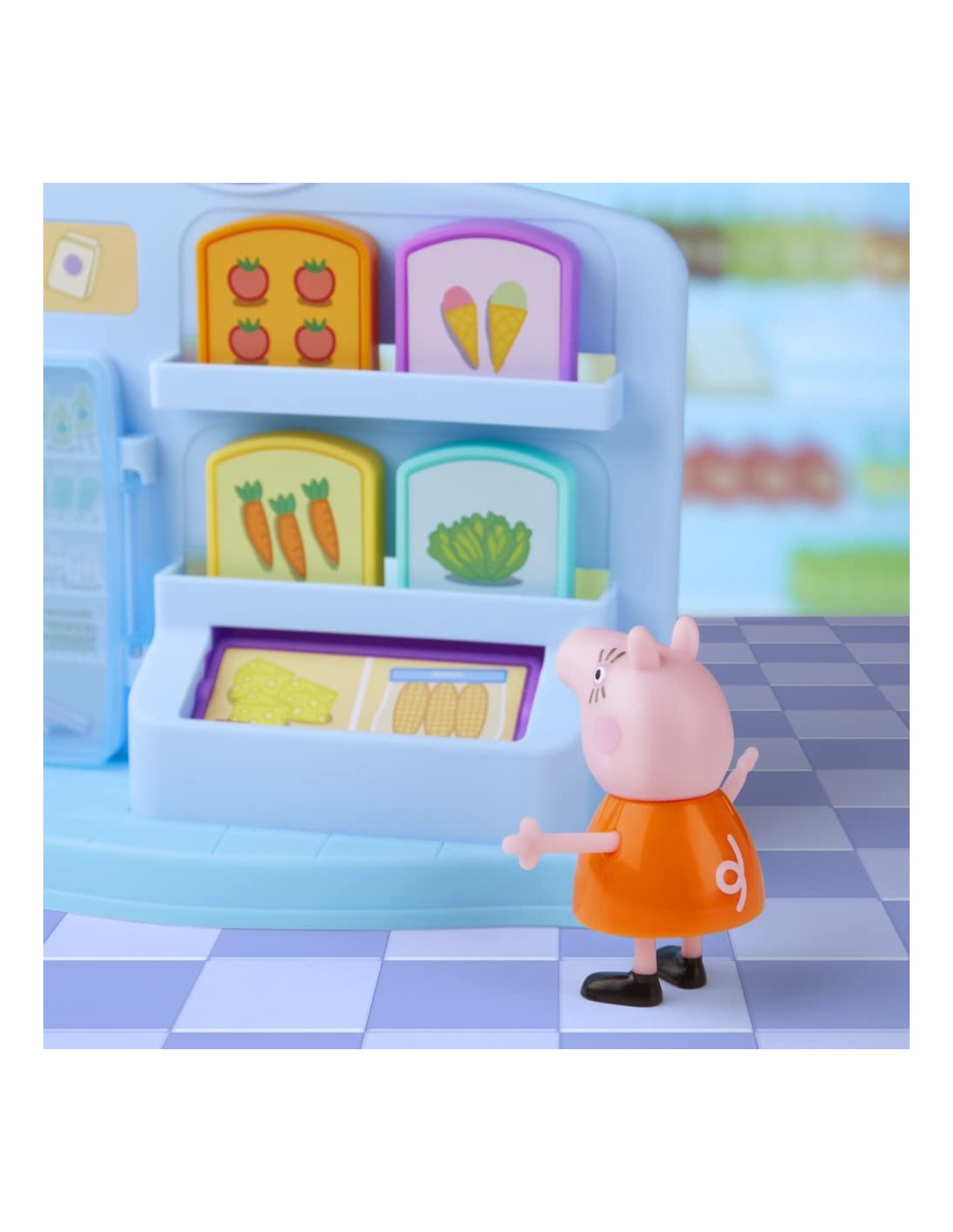 ANDIAMO A FARE LA SPESA CON PEPPA PIG: con il playset giocattolo per età prescolare Peppa al Supermercato, i piccoli maialini possono far finta di fare la spesa insieme a Peppa Pig e Mamma Pig. È il momento di riempire il carrello SFONDO COLORATO A TEMA NEGOZIO: presenta 4 accessori a tema cibo che possono essere inseriti nel carrello, oltre a un frigorifero integrato che si può aprire e chiudere. Include anche le action figure di Peppa Pig e Mamma Pig AREA CASSA DIVERTENTE: posiziona la spesa sul bancone e un'action figure sul punto di attivazione. Spingi il personaggio in avanti per vedere la spesa muoversi in avanti e la cassa aprirsi UN FANTASTICO REGALO PER BAMBINI IN ETÀ PRESCOLARE CHE ADORANO PEPPA PIG dai 3 anni in su. Ideale per festività, compleanni e qualsiasi altra occasione CERCA GLI ALTRI PLAYSET HASBRO PEPPA PIG, come il set Peppa all'acquario (venduto separatamente, secondo disponibilità)