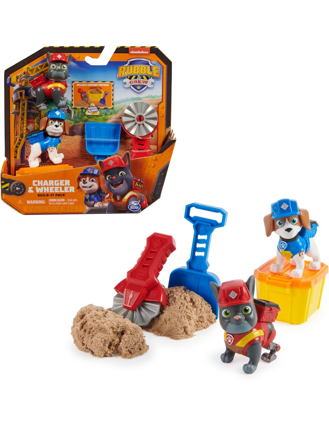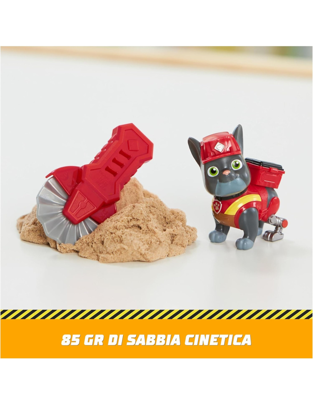 COLLEZIONA TUTTA LA LINEA RUBBLE&CREW: per altro divertimento, porta a casa tutti i giocattoli Rubble & Crew, come i veicoli da cantiere, i personaggi e i set di gioco Include: 2 personaggi, 2 attrezzi, 85,05 g di Kinetic Sand Build-It, 1 contenitore richiudibile IMPARA GIOCANDO: i giochi sensoriali e per le costruzioni Rubble & Crew sono realizzati per offrire ai bambini e ai genitori l'opportunità di costruire e giocare insieme, mentre i bambini sviluppano le abilità fino-motorie e l'immaginazione