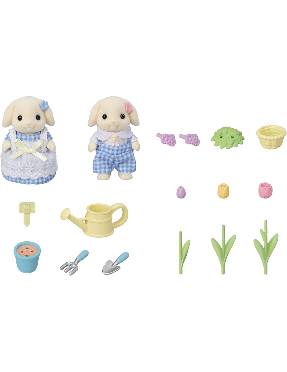 Il set da giardinaggio -Fratello e Sorella Coniglio Flora - contiene la ragazza e il ragazzo Coniglio Flora e una varietà di accessori da giardinaggio. I due personaggi hanno adorabili orecchie cadenti e amano i fiori. Viene fornito con tulipani, altri fiori e accessori come una pala e un annaffiatoio per prendersene cura. I fiori sulle orecchie dei personaggi possono essere scambiati. Stimola il gioco di ruolo fantasioso per i bambini. Adatto a partire dai tre anni in su.