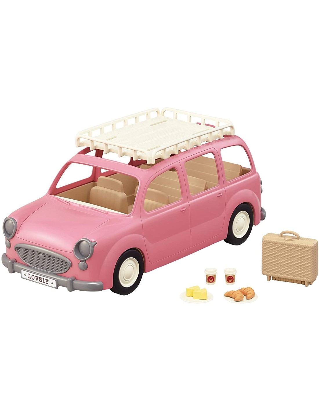 Un'auto con portapacchi, che può ospitare fino a otto personaggi. Lo sportello del bagagliaio e i sedili si trasformano in un tavolo da picnic! I piatti e il cibo inclusi possono essere messi nel cestino. Stimola il gioco di ruolo fantasioso da parte dei bambini. Adatto dai tre anni in su.