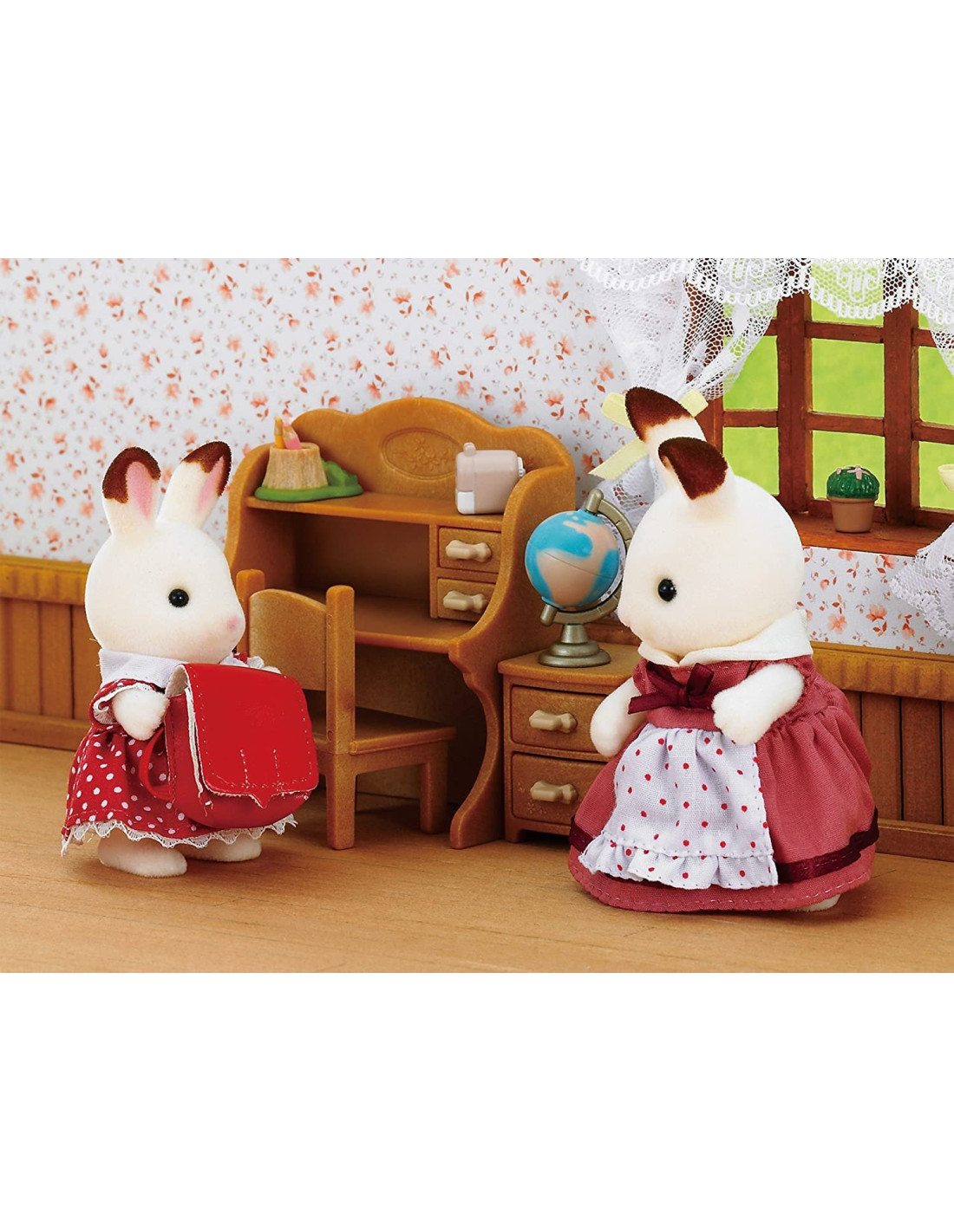 Per aiutare Freya a studiare per la scuola, include anche una scrivania e una sedia di accompagnamento, oltre a un pratico bauletto laterale. Il set arriva anche con portapenne, matita rosa, matita gialla e temperino, in modo che Freya possa prendere appunti mentre impara. Per assicurarsi che Freya sia nello stato d'animo ideale per lo studio, c'è anche un globo e una borsa da trasporto chic per i suoi libri di scuola. Non adatto a bambini di età inferiore ai 36 mesi. Rischio di soffocamento, contiene piccole parti -Stimolare il gioco di ruolo immaginativo nei bambini -Prodotto ufficiale Sylvanian Families -Ben fatto con attenzione ai dettagli Stimolare il gioco di ruolo immaginativo nei bambini Prodotto ufficiale Sylvanian Families Ben fatto con attenzione ai dettagli