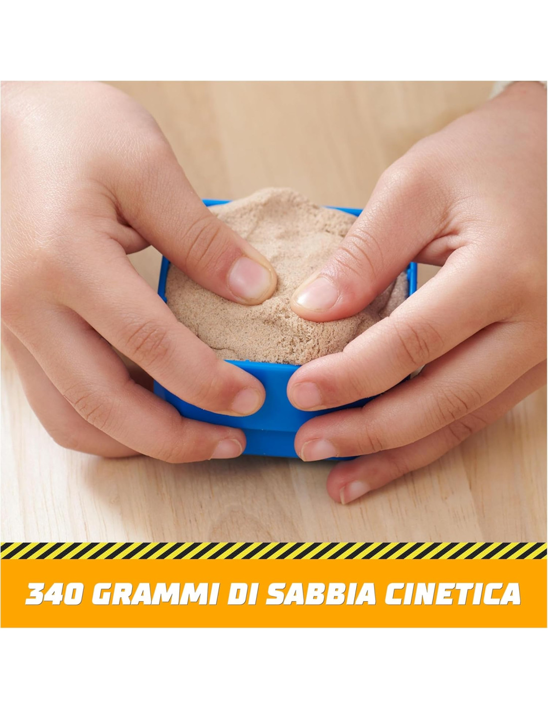 RIVIVI LE AVVENTURE DELLA SERIE RUBBLE & CREW: con i 340 g di sabbia Kinetic Sand, i bambini possono divertirsi a creare i mattoni, poi con la gru li possono sollevare e spostare nella zona di lavoro