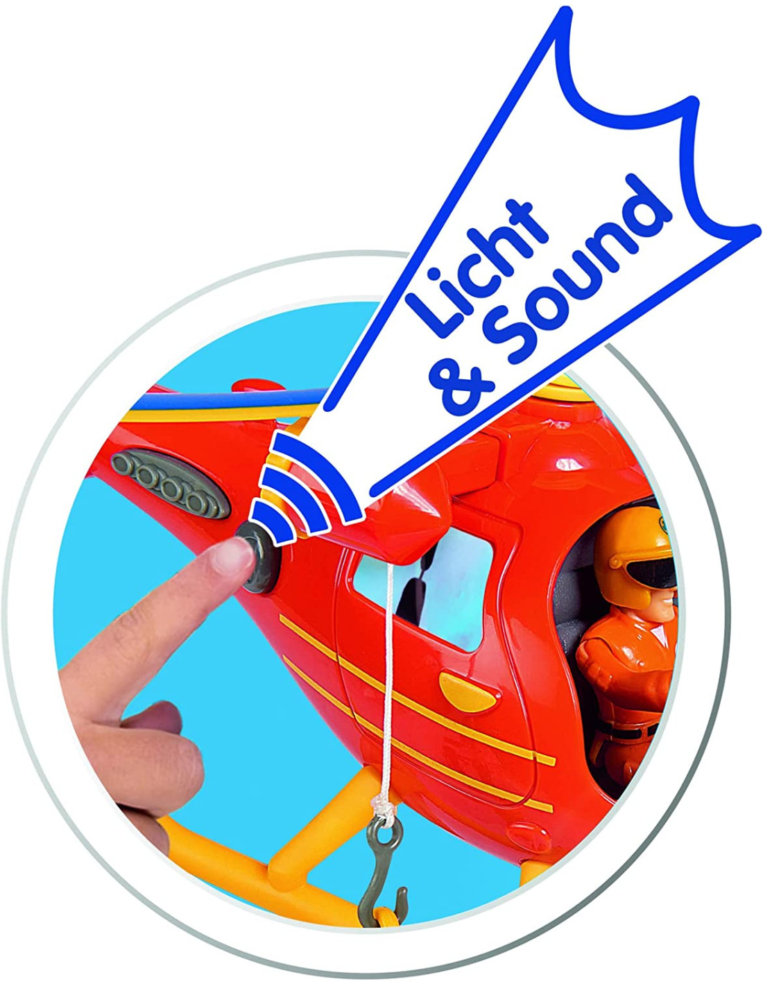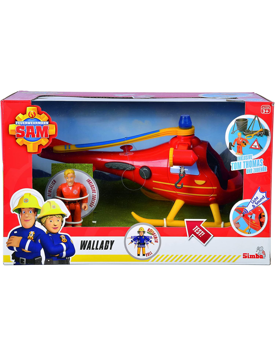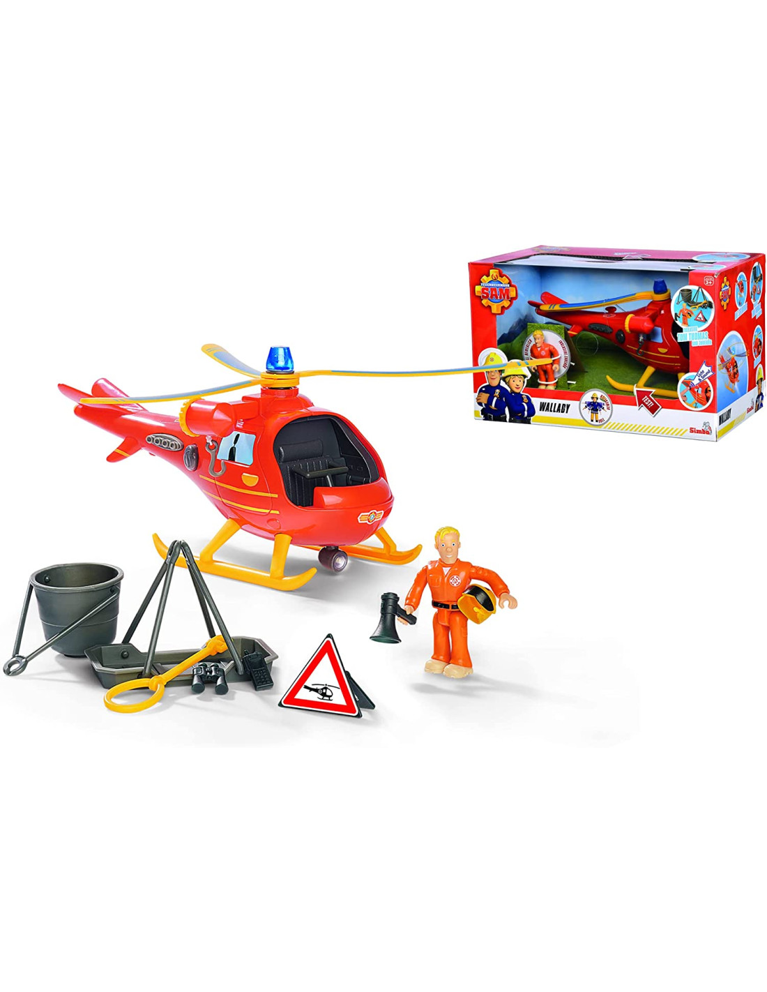 SIMBASIMBA - Sam il Pompiere Elicottero Wallaby, 109252510038, + 3 anni, cm 15 con luci e suoni