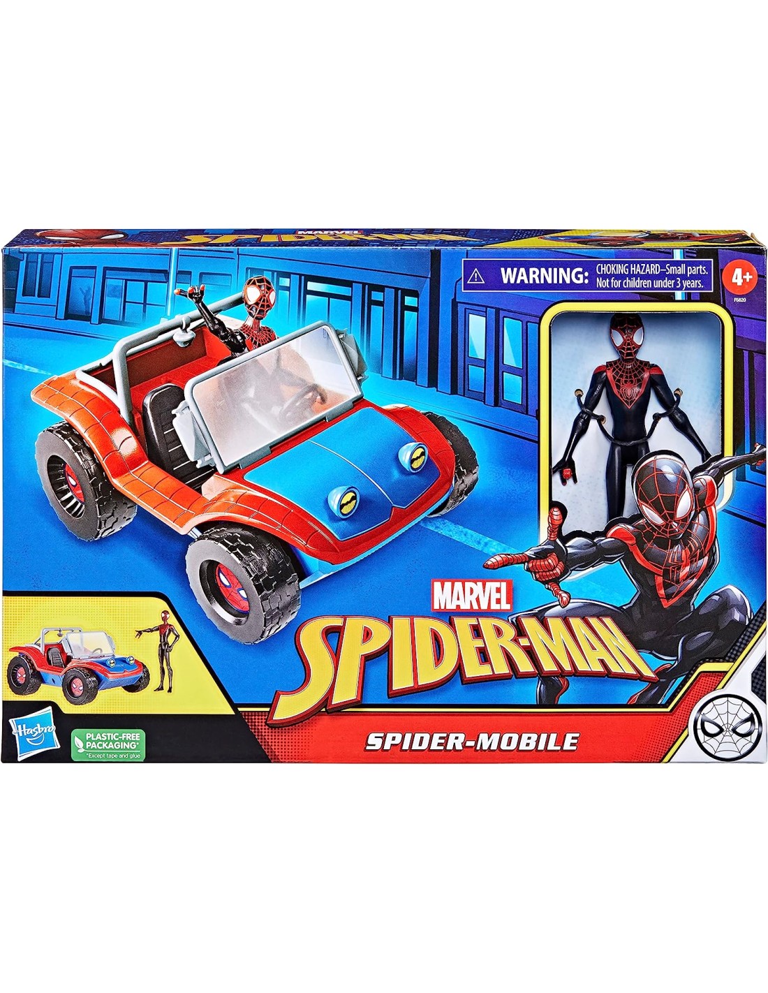 RUOTE LISCE: la macchinina di Miles Morales è dotato di ruote lisce che permettono a bambini e bambine di posizionare l'action figure all'interno e lanciarla in emozionanti missioni di soccorso