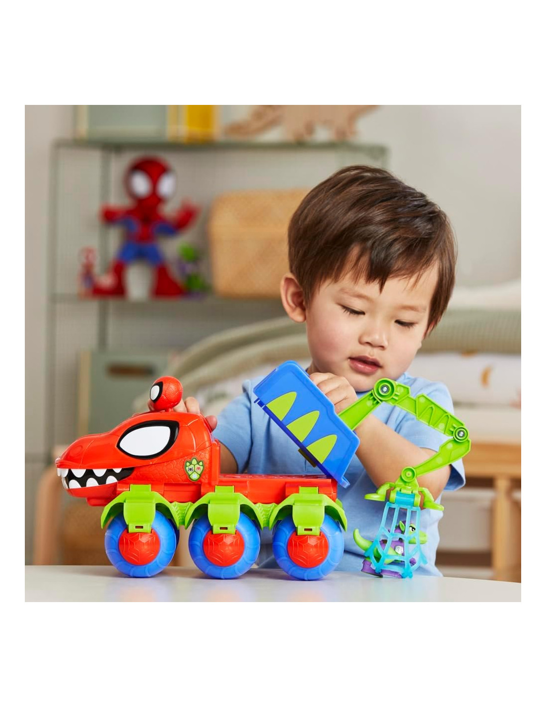 Ispirato al nuovo contenuto della quarta stagione di Spidey e i Suoi Fantastici Amici Dino-Webs, introduciamo il Veicolo Dino Webs alto 20 cm! Il Veicolo è dotato di un super artiglio per catturare i dinosauri. Include il personaggio di Goblin Dino da 6 cm e di Spidey da 10cm con la nuova tuta Dino.