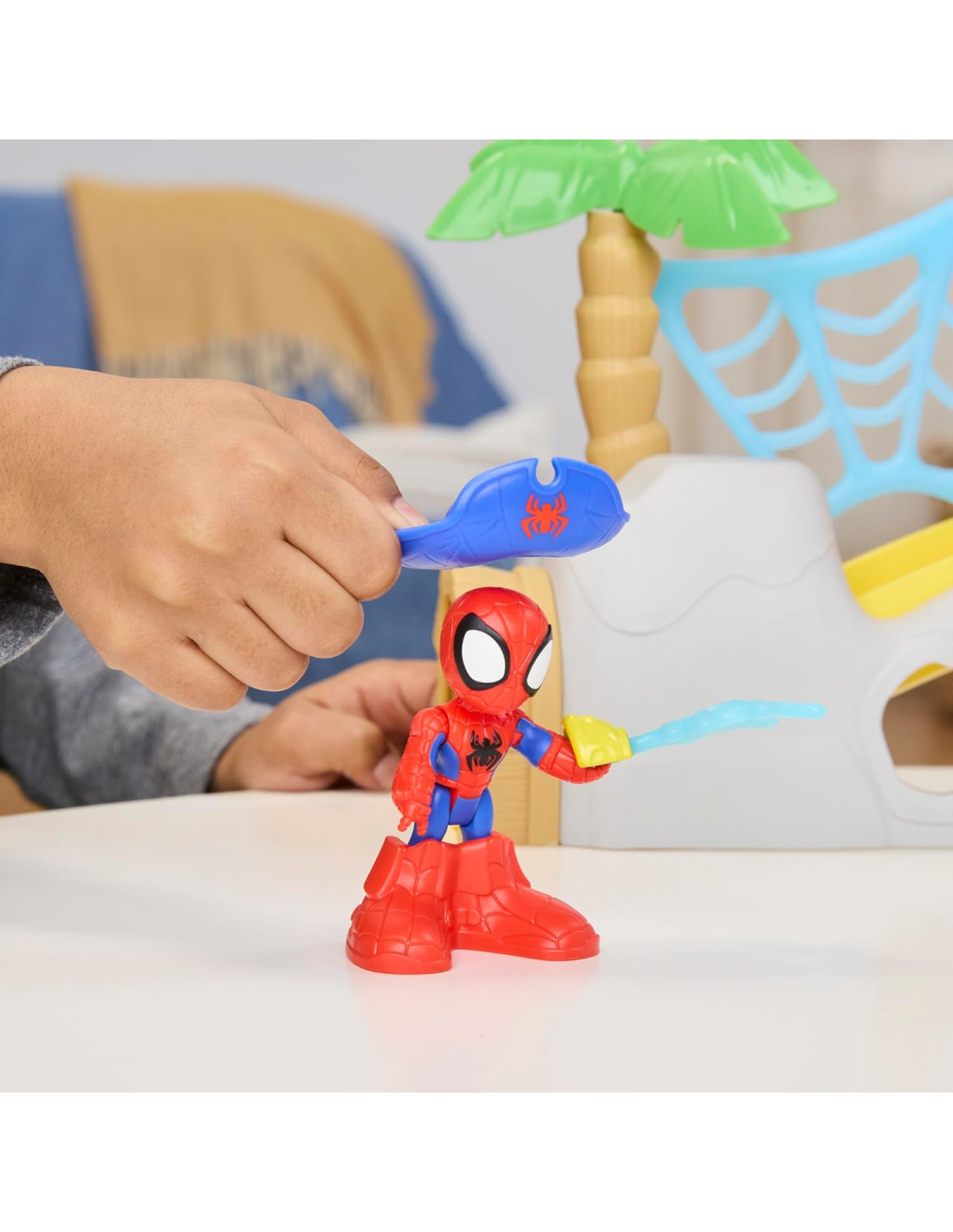 SCIVOLO CON BOTOLA: i bambini e le bambine possono posizionare uno dei giocattoli "Spidey e i suoi fantastici amici" da 7,6 cm inclusi sulla torre del playset, poi ruotare il timone per attivare la botola e far scendere l'action figure dallo scivolo