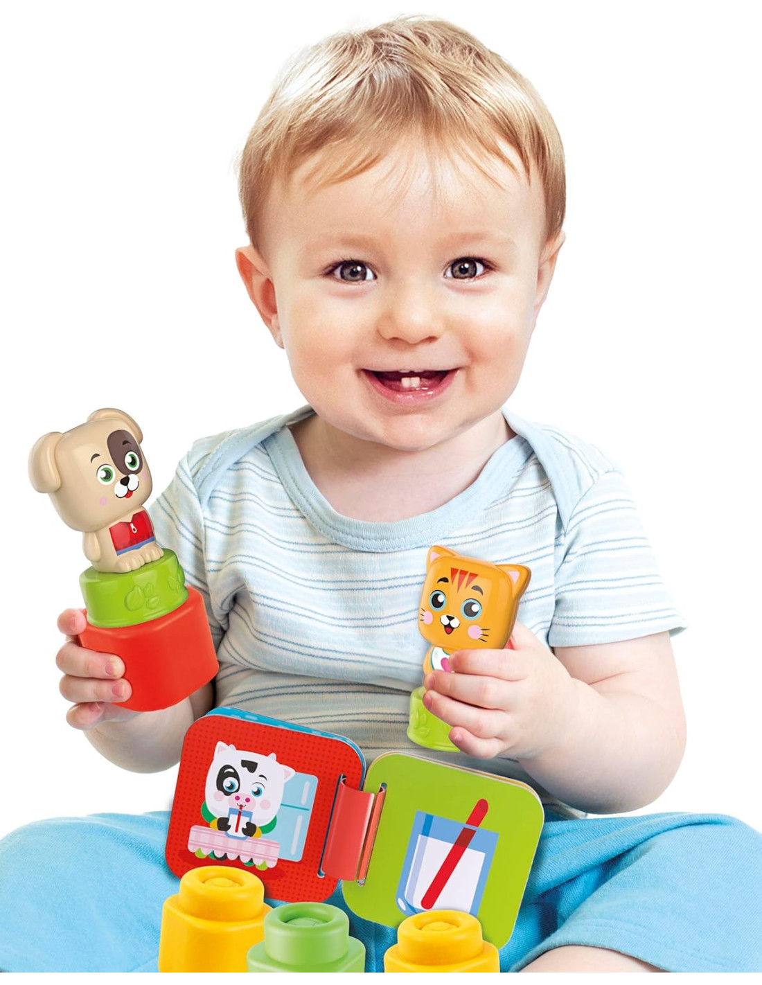 CONTENUTO DEL GIOCO: oltre al libricino ci sono 6 mattoncini e tre personaggi. I morbidi mattoncini Clemmy aiutano a stimolare la manualità e la sensorialità