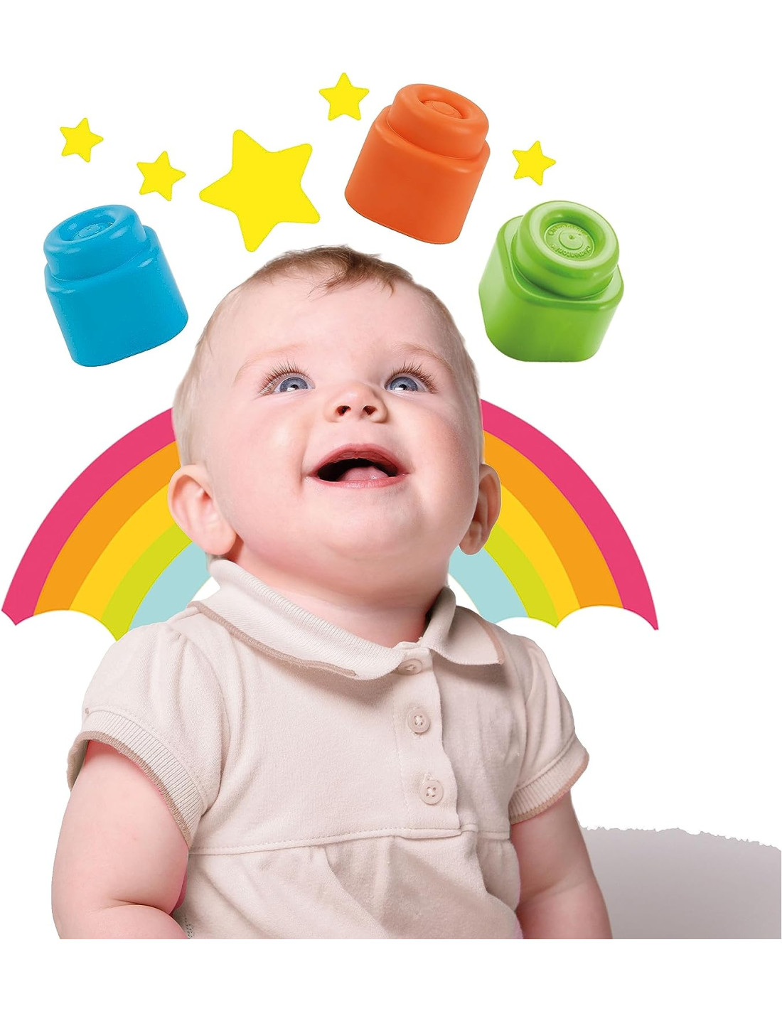 Realizzati in materiale atossico e lavabile, sono facili da afferrare e impilare supportando la fantasia e la creatività del bambino.