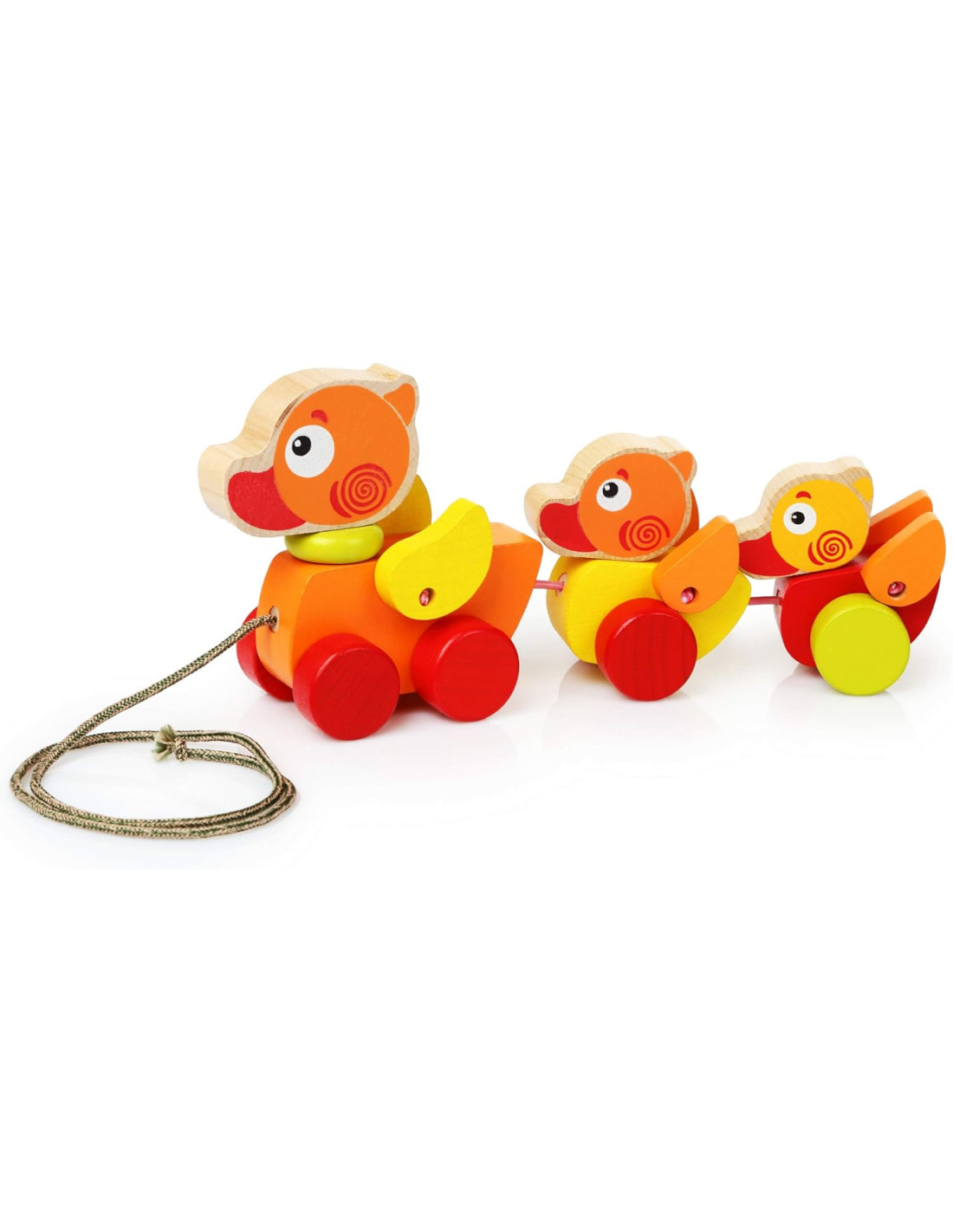 Tutti in fila dietro la mamma. Prendi la corda e portati a queste simpatiche anatre e trasformali in compagni di avventura I pezzi che formano le anatre sono realizzati in legno di faggio sostenibile, proveniente da foreste europee ecologiche, con finitura con vernice ad acqua atossica.