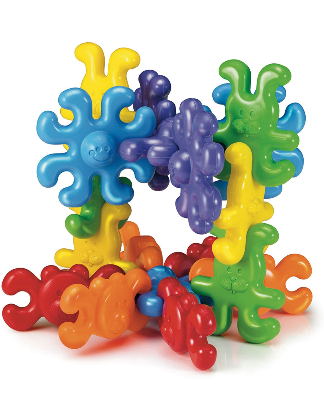 Grandi elementi in tre simpatiche forme che, grazie ai profili particolari, si incastrano facilmente tra di loro per realizzare buffe catene o straordinarie strutture tridimensionali sempre diverse