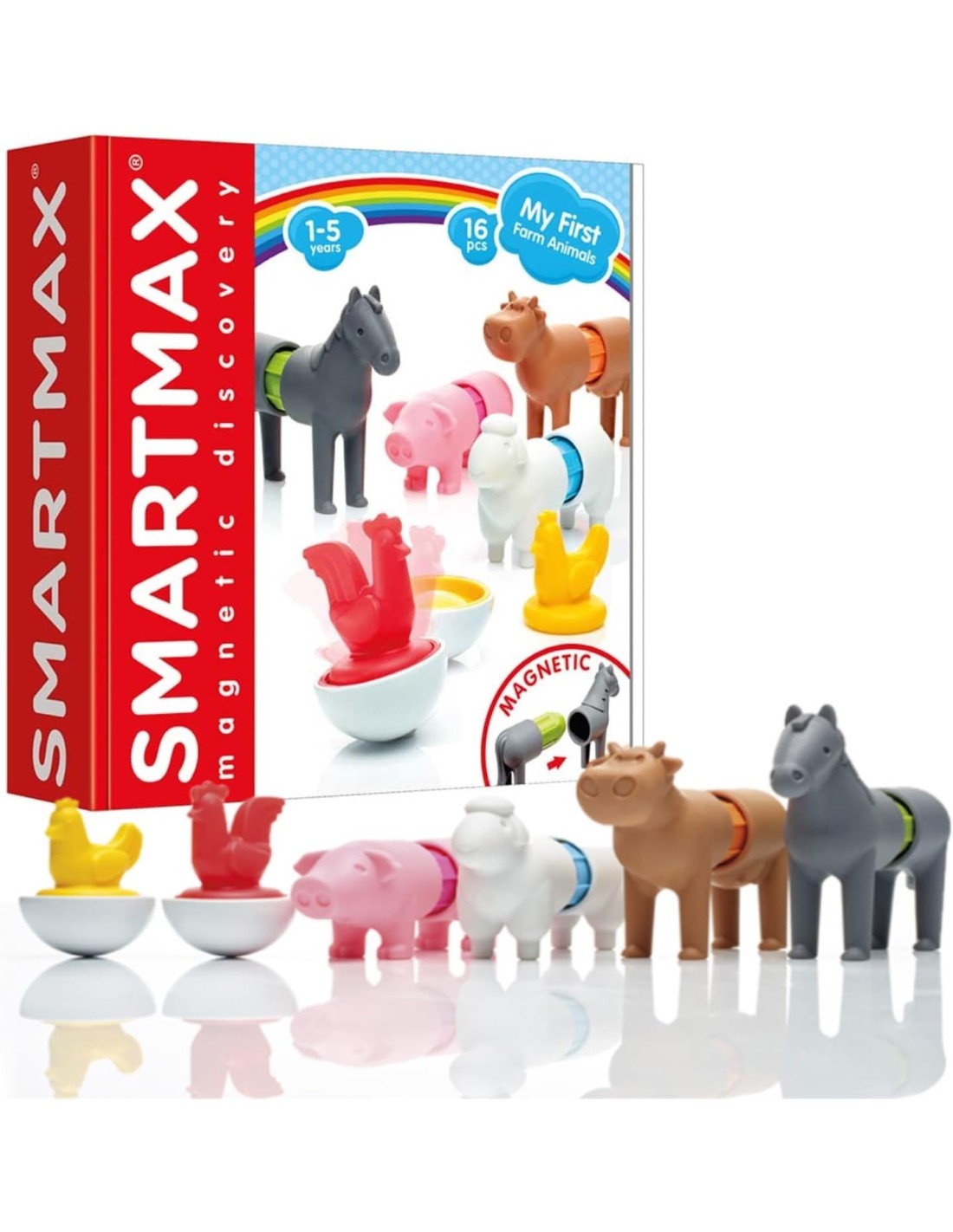 Vivi il primo fascino del magnetismo in modo giocoso con la prima fattoria. Creazioni di animali più divertenti. 16 pezzi. A partire da 1 anno.