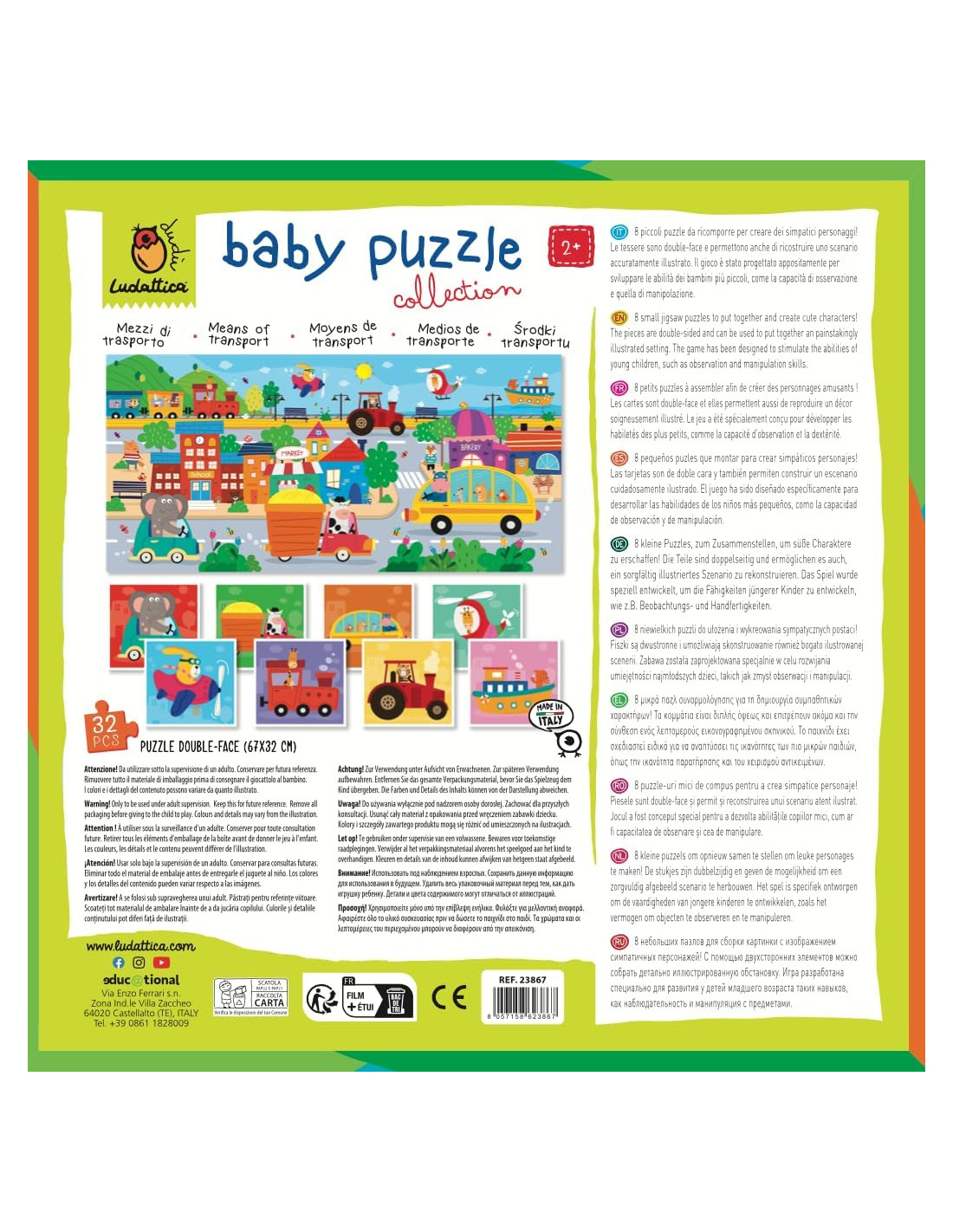 MADE IN ITALY: Tutti i giochi e i puzzle Ludattica sono realizzati in Italia con materiali sicuri e resistenti nel rispetto della migliore tradizione artigiana italiana e senza l'utilizzo di materiali plastici.
