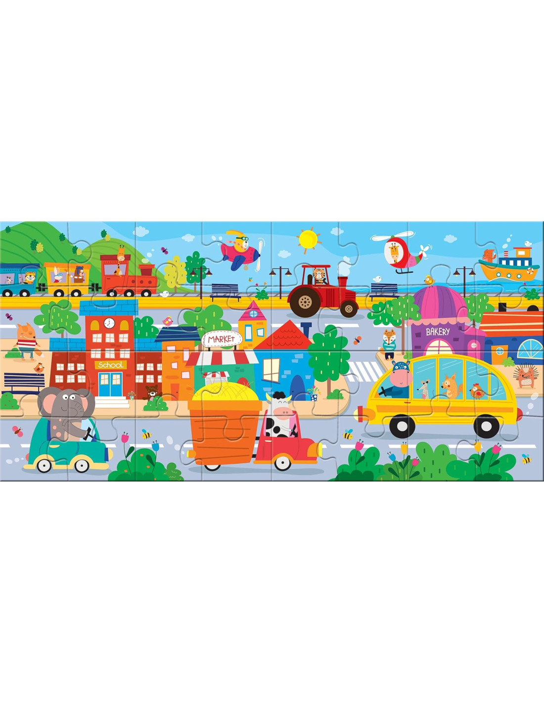 PUZZLE BAMBINI 2 ANNI DOUBLE FACE: Da un lato otto mini puzzle da 4 pezzi facili da comporre per bambini di due anni, dall'altro lato un grande scenario di 32 pezzi, con splendide illustrazioni adatte ai più piccoli, per un divertimento che cresce con il bambino.