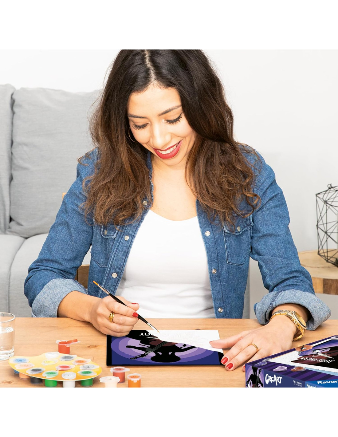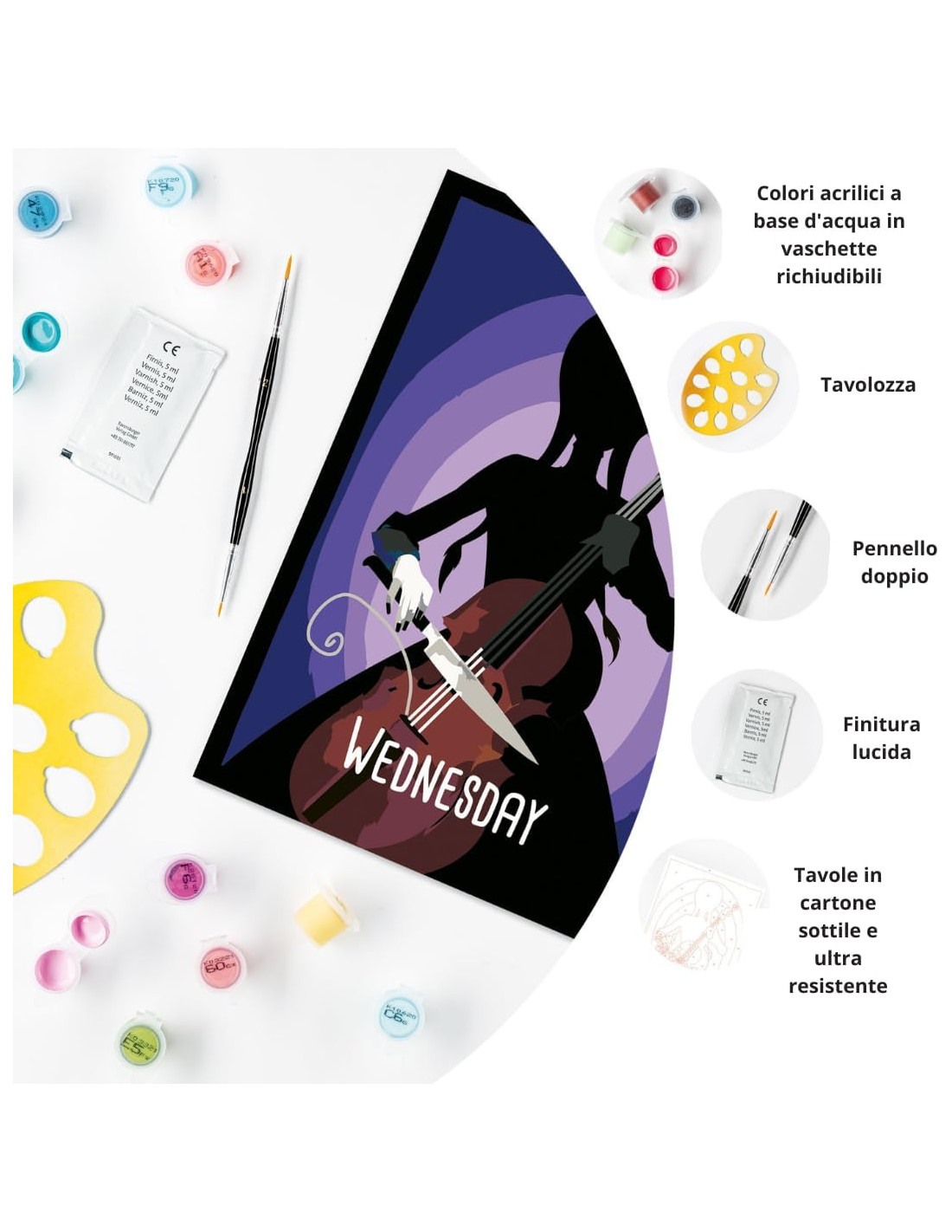 REGALI CREATIVI: il regalo ideale per chi ama dipingere e vuole creare dei piccoli capolavori su tela; basta rilassarsi, prendere in mano il pennello, aprire i barattoli con i colori già pronti all'uso ed iniziare a colorare KIT DI PITTURA CON MERCOLEDÌ ADDAMS: il kit comprende la tavola prestampata, i colori acrilici a base d'acqua in vaschette richiudibili e un porta tempere; il pennello e un foglio di controllo con campi numerati sono inclusi LIBERA LA FANTASIA: CreArt è il kit di pittura educativo per gli artisti più piccoli e rilassante per i più grandi che aiuta a esercitare la manualità e la motricità, stimola la fantasia e migliora la concentrazione PICCOLI CAPOLAVORI DI QUALITÀ: il kit completo di pittura CreArt garantisce sicurezza e qualità, grazie a una tavola da dipingere resistente e a colori a base d'acqua facilmente lavabili, rendendo l'arte accessibile e divertente; dipingere con i numeri non è mai stato così semplice SCOPRI IL MONDO CREART: puoi scegliere tra tantissimi soggetti e diversi livelli di difficoltà a seconda dei gusti e dell'età; il gioco creativo che permette ai bambini di decorare le loro camerette e agli adulti di rilassarsi colorando