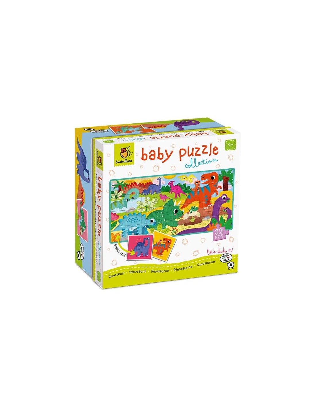 Ludattica - Baby puzzle Dinosauri - Puzzle 32 pezzi bambini 2+ - Due giochi in uno - Dimensione 67 x 32 cm - Made in Italy