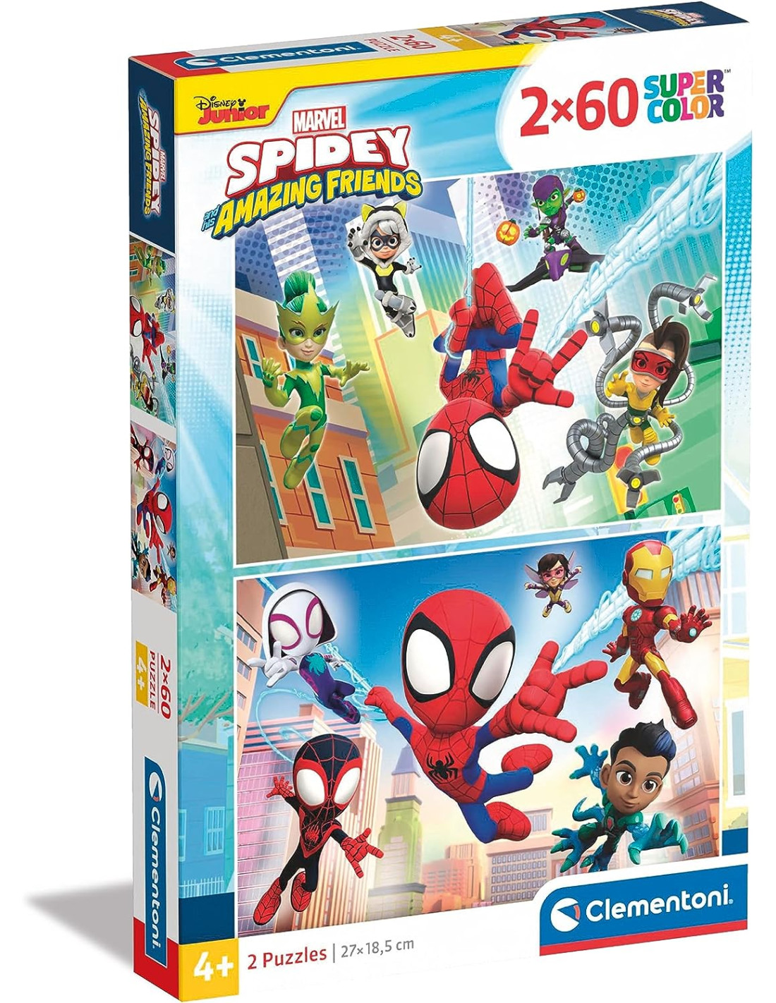 Clementoni- Marvel Spidey And His Amazing Friends Supercolor Friends-2x60 (Include 2 60 Pezzi) Bambini 4 Anni, Puzzle Cartoni Animati-Made in Italy, Colore Multilingua, 21625