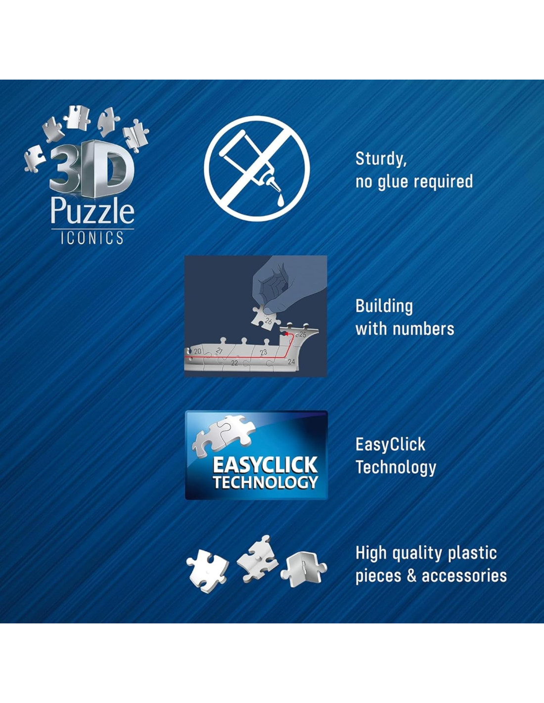 ASSEMBLARE IL PUZZLE 3D BREAKER: Completate il puzzle 3D grazie alla tecnologia Easy Click; i pezzi si assemblano facilmente utilizzando la numerazione sul retro di ogni pezzo o a intuito per una sfida più emozionante con questi modelli di costruzioni per adulti.
