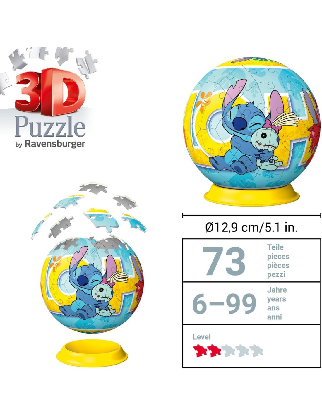 PUZZLE 3D: un gioco divertente che diventa un grande oggetto decorativo, questo fantastico Puzzle disney di Stitch è ideale per ragazzi o ragazze, bambini a partire dai 6 anni.