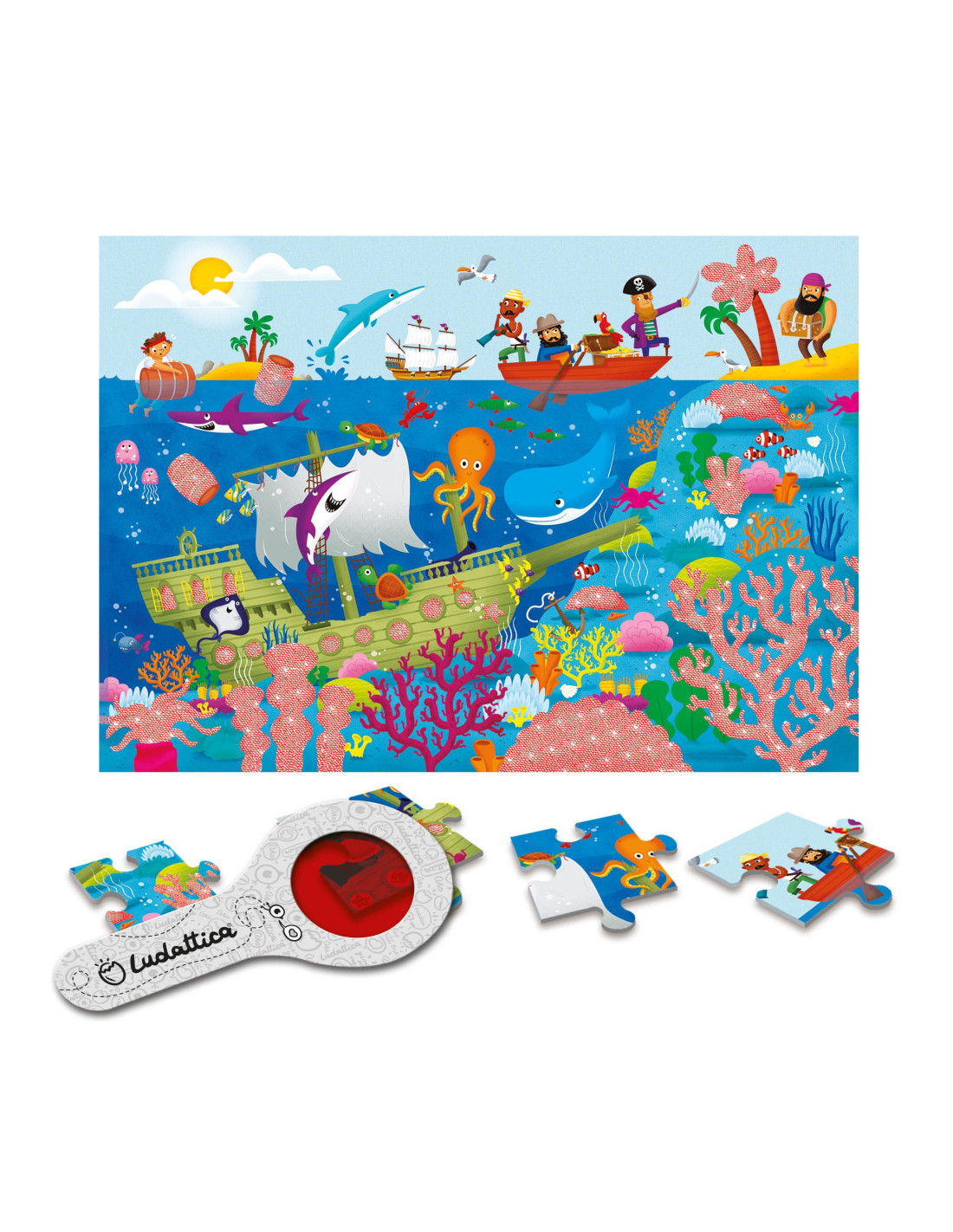 Due giochi in uno: Dopo aver completato il puzzle, i bambini potranno usare una lente 'magica' che permetterà di scoprire cosa si nasconde nelle zone segrete dell'illustrazione.
