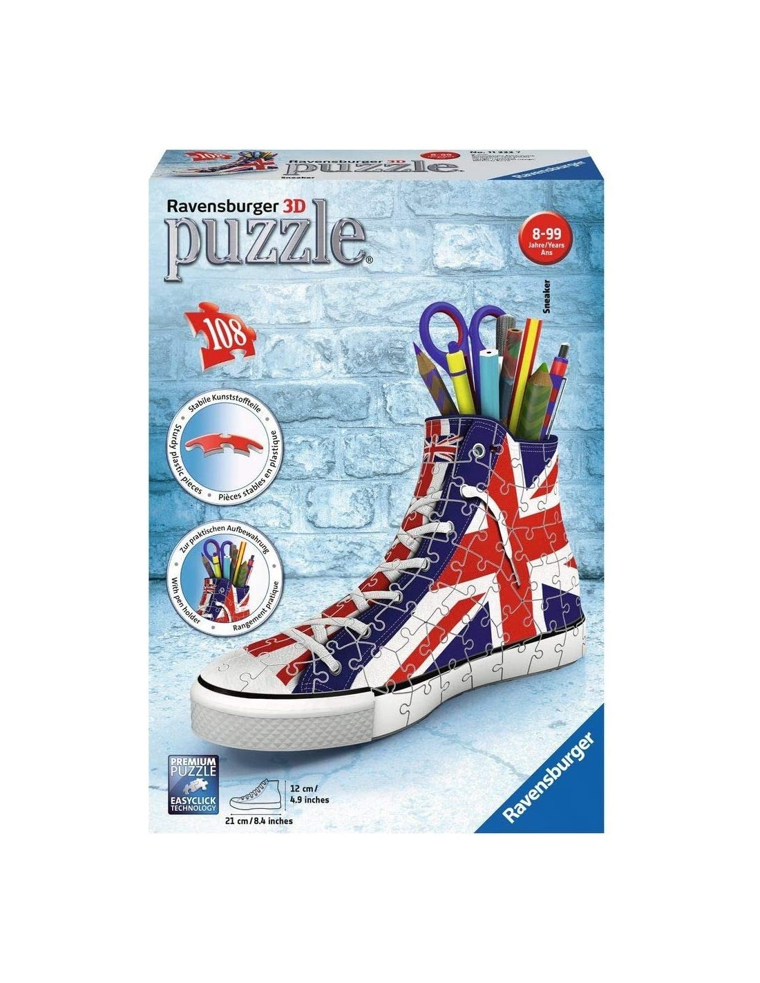 Il portapenne ottimo per tutti. Componi il puzzle e utilizza la sneaker come pratico contenitore per conservare i tuoi oggetti preferiti. Dimensione puzzle: 21,5x12 cm. Dimensione scatola: 28x19x7 cm.