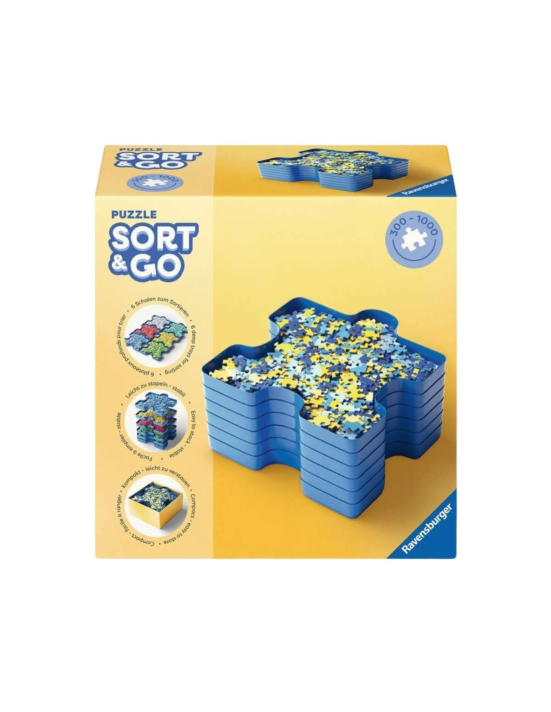 Ottimizza i tempi di assemblaggio e tieni tutto sotto controllo con il vassoio per la selezione dei puzzle Ravensburger Sort and Go, un accessorio essenziale per gli appassionati di puzzle. Sviluppato per puzzle fino a 1.000 pezzi, questo vassoio offre organizzazione, risparmio di tempo e facilità d'uso, permettendoti di concentrarti sul divertimento del puzzle. Il vassoio per la selezione dei puzzle Ravensburger Sort and Go è un set di 6 vassoi impilabili, progettati per ordinare i pezzi per colore, forma o consistenza. Progettati per puzzle fino a 1.000 pezzi, sono adatti sia per i giocatori individuali che per le sessioni di famiglia, rendendoli ideali per gli organizzatori che preferiscono un processo metodico e visivo.