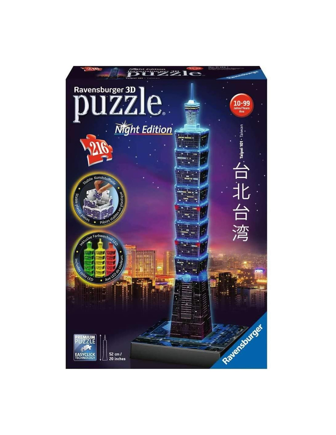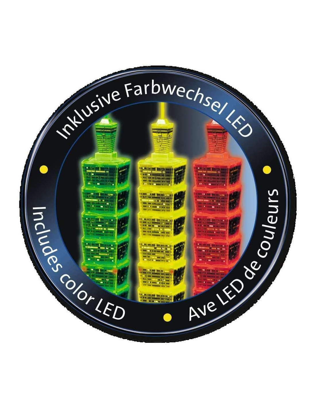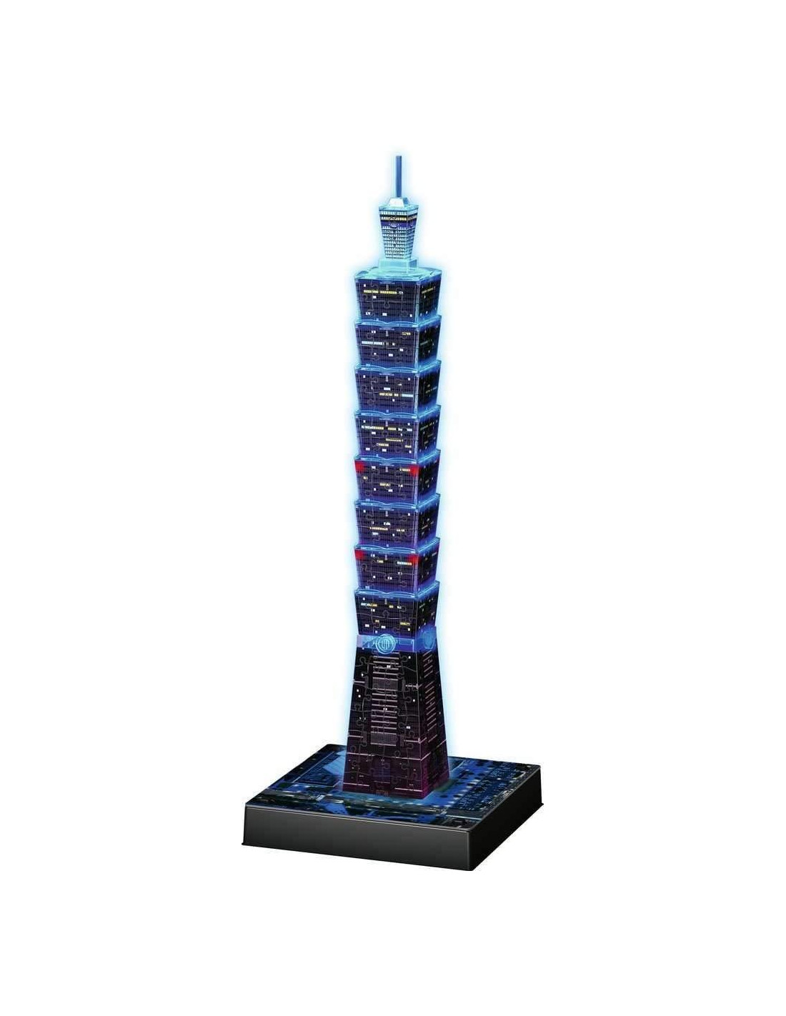 La Taipei Tower diventa un Puzzle 3D che si illumina. Grazie alla luce LED posizionata sulla base, la costruzione diventa di tanti e belli colori scintillanti. Edifici ottimamente stabili realizzati con veri pezzi di puzzle. Pezzi in fibra plastica molto resistente di varie forme. Si assemblano senza l'uso di colla, forbici o altri utensili, sono ottimamente stabili e rappresentano fedelmente in ogni singolo pezzo tutti i dettagli del monumento. Contiene piccole parti che potrebbero essere ingerite. Pericolo di soffocamento. Dimensioni scatola: 28x19x7 cm