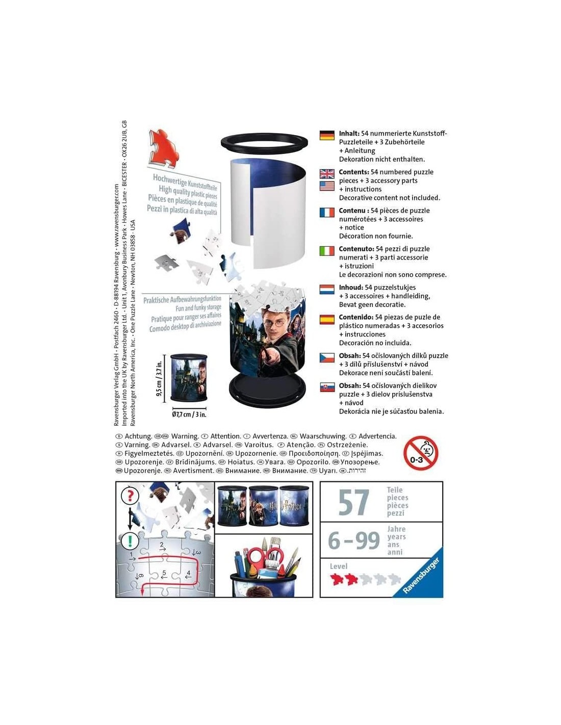Tutta la qualità ravensburger in un puzzle 3D Costruisci il portapenne 3D di harry potter Il puzzle 3D diventa un utile portapenne Dimensioni scatola: 14x20x7 cm Dimensioni puzzle: 8x8x10 cm